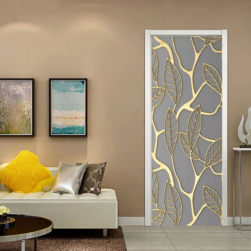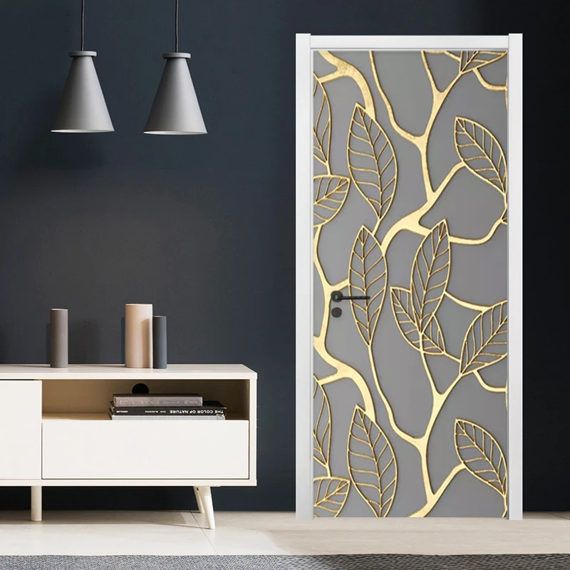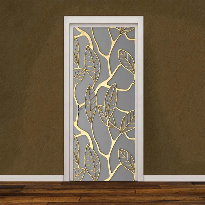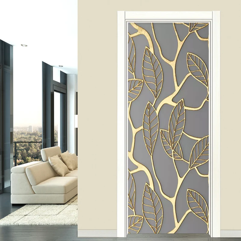 Фотообои 3D стерео Золотые листья дверь наклейка гостиная спальня Современное Абстрактное Искусство домашний декор творческая DIY Наклейка роспись