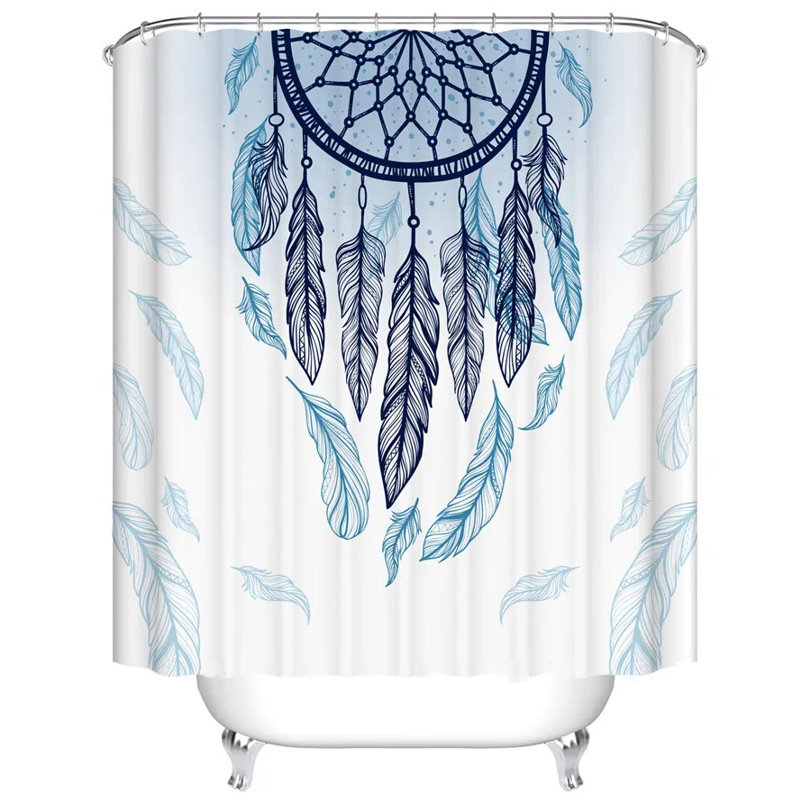 Занавеска с узором в виде перьев для ванной комнаты, занавеска для ...