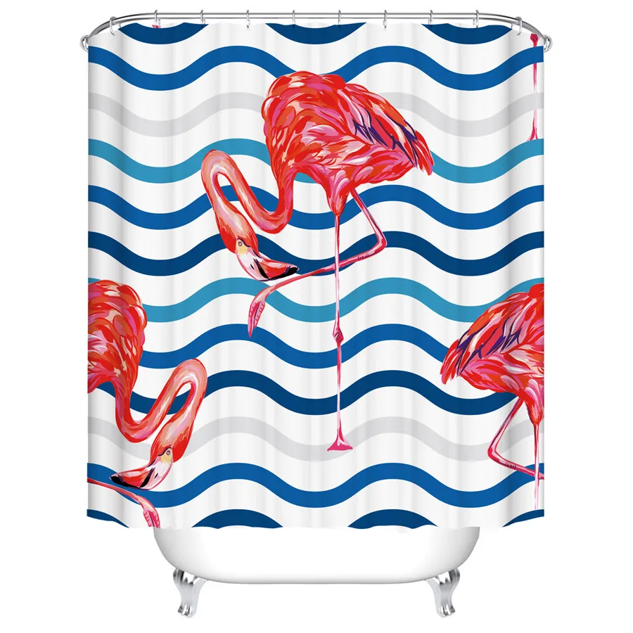 Занавеска для душа из полиэстера с принтом фламинго, животных, кота