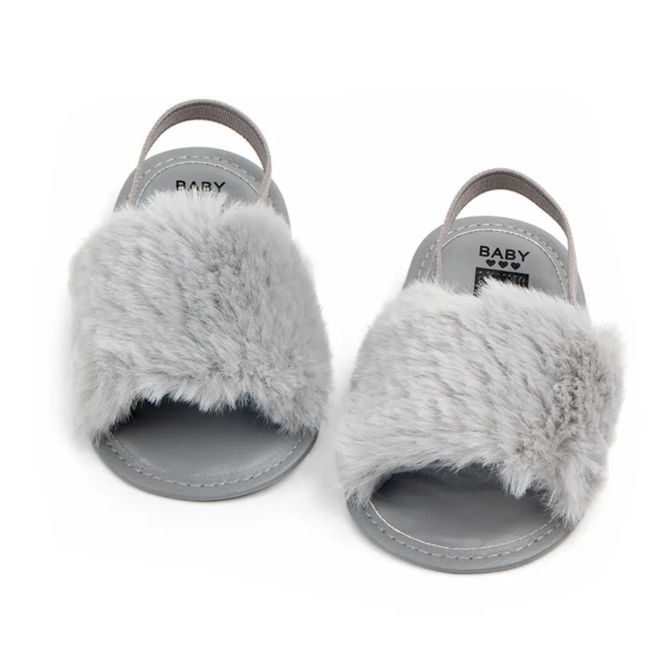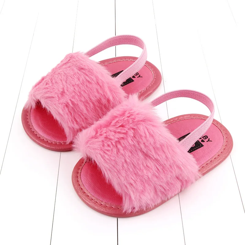 2019 модная детская летняя обувь из искусственного меха милые детские сандалии тапочки с мягкой подошвой домашняя обувь для 0-18 месяцевОсобенность: