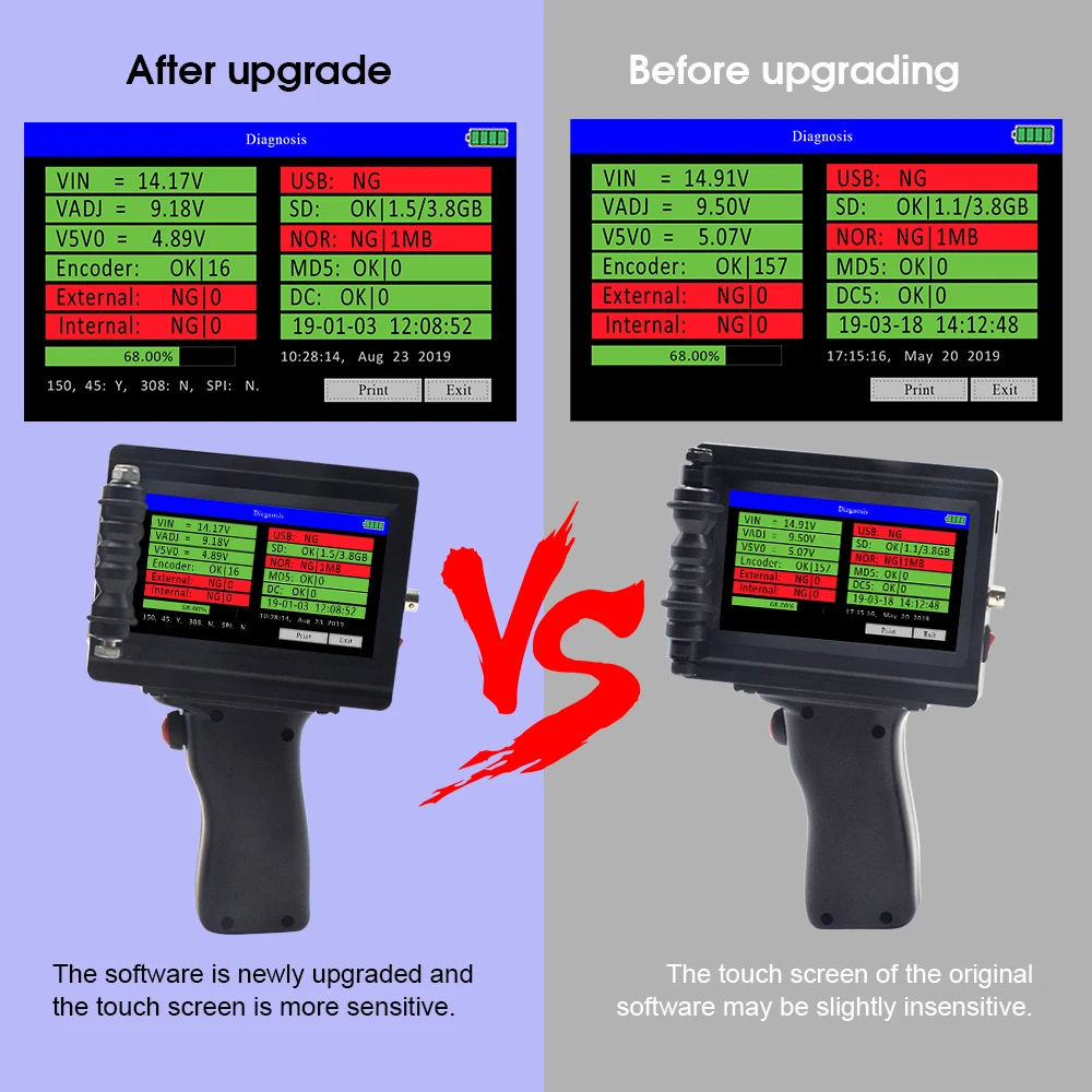 О: 1. Сначала определите, находится ли расстояние слишком далеко, слишком далеко, шрифт будет неясен. 2. Подтвердите, что чернильный картридж имеет чернила; 3. В настройке машины Отрегулируйте струйную розетку (есть два левых и правых струйных порта) и спроектируйте частоту струйной печати 4 в настройке печати. Если первые три не работают, чернильный картридж заблокирован и спирт используется для очистки струйной печати.