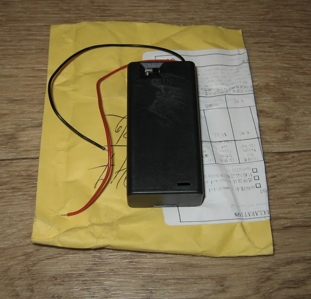 Хороший чехол для трех батареек АА, пластик крепкий, удобный... Пришло в большой общей посылке.