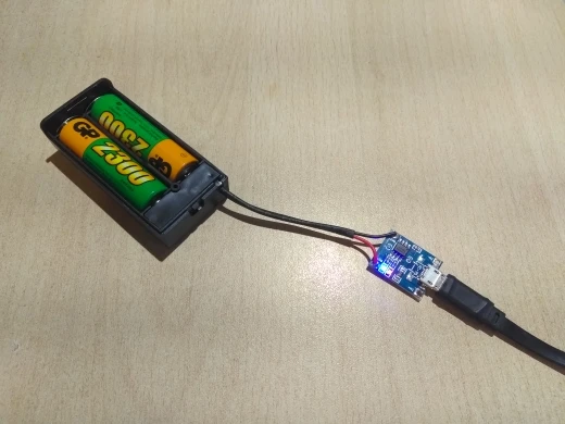 Идеальный держатель для изготовления зарядного устройства для литиевого аккума 14500, которые использую в маленьких светодиодных фонарях Q5. На обратную сторону клеим двусторонним скотчем плату зарядки, подпаиваем проводки и зарядка готова!