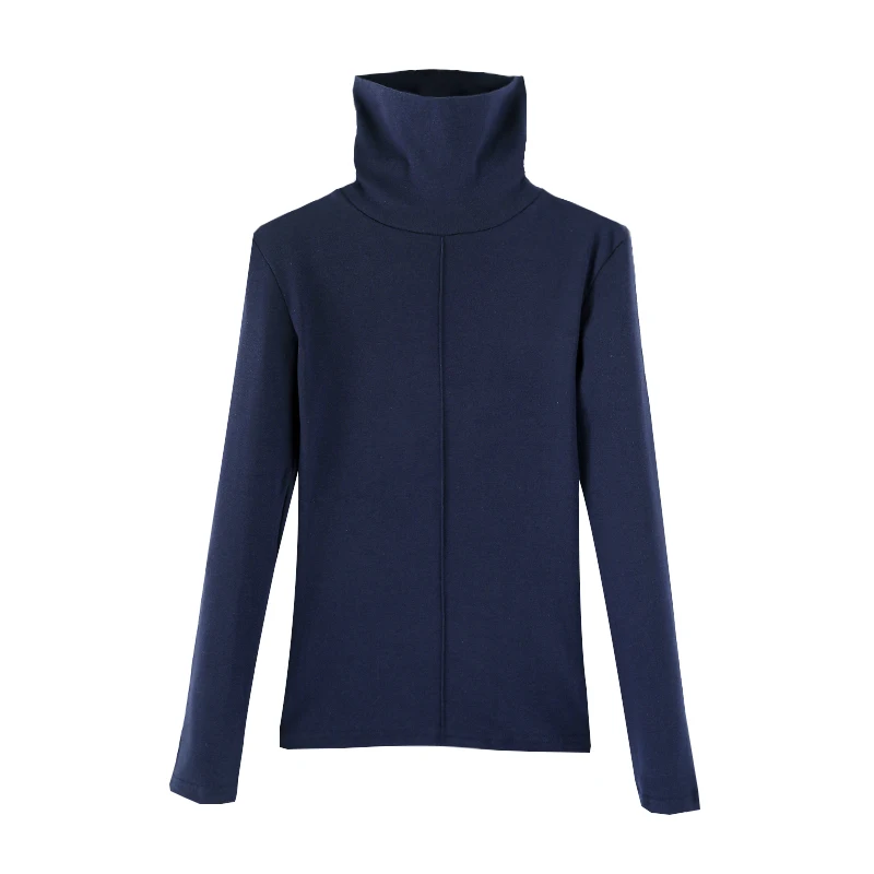Футболки женские, из 100% хлопка, с высоким воротником и длинным рукавом, универсальные