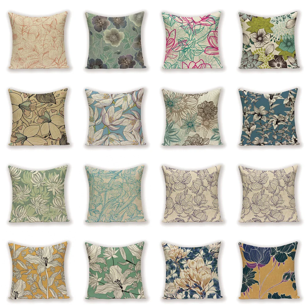 Чехол в стиле ретро с изображением цветов, декоративные льняные нав...