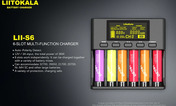 Зарядное устройство LiitoKala для аккумуляторов Lii-500S, Lii-PD4, Lii-500, Lii-S6, 3,7, 1,2, 18650, 26350, AA, AAA, с ЖК-дисплеем