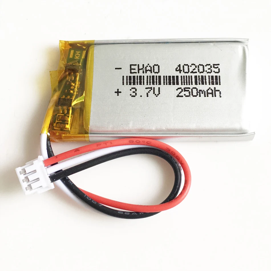 Литий-полимерная аккумуляторная батарея EHAO 402035, 3,7 В, 250 мАч, с JST, 1,5 мм, 3-контактный разъем для GPS, Mp3, умных часов