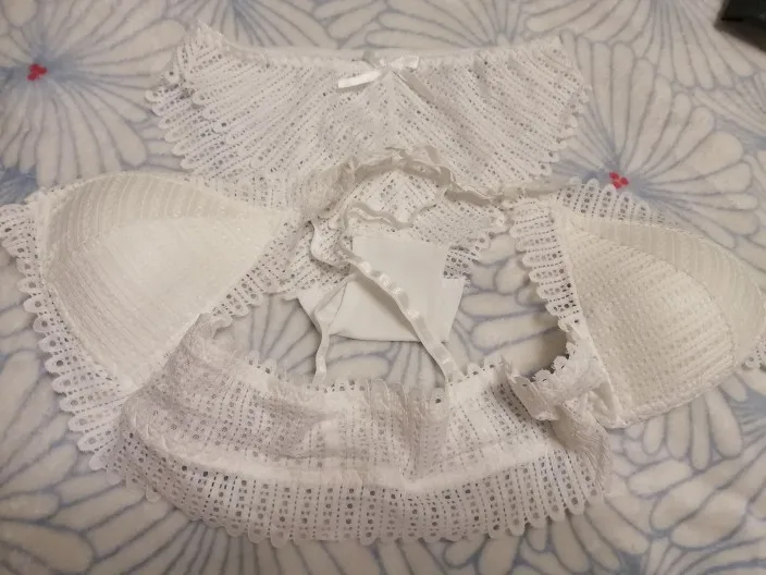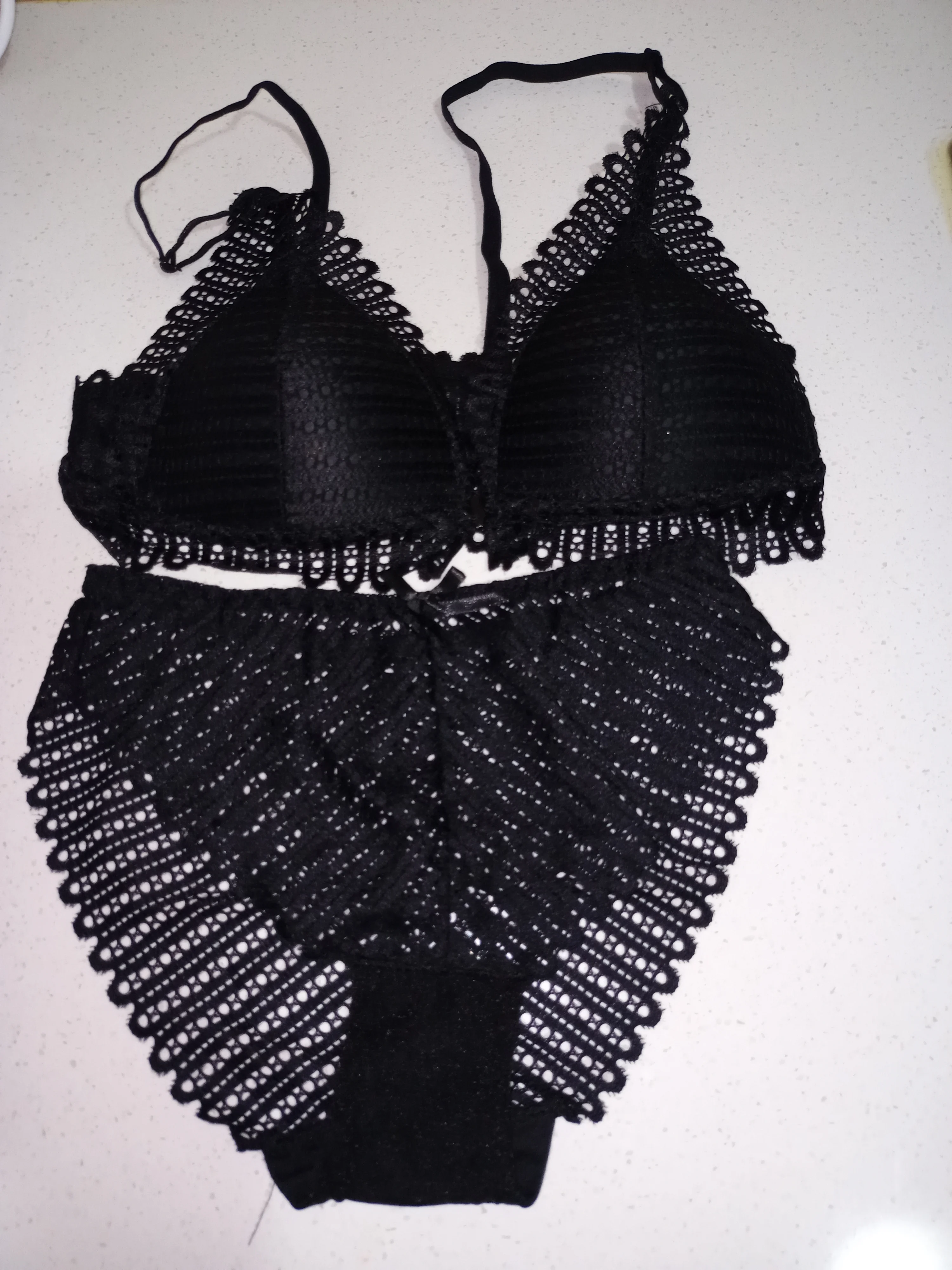 Нежный кружевной комплект. Дочь довольна. На бюсте пластиковая застёжка сомнительного качества.