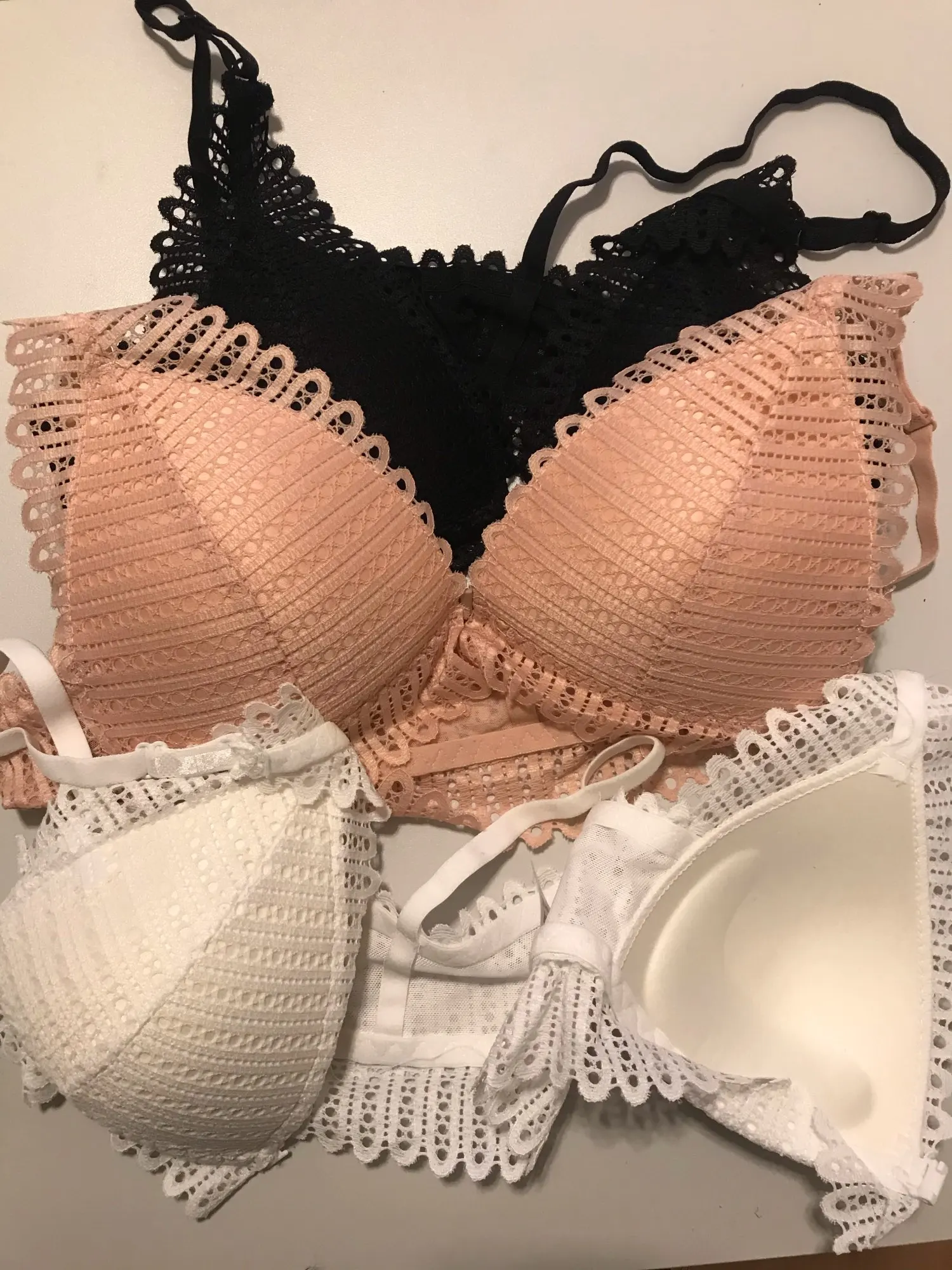Красивый комплект. Получил все 3 цвета. Хорошо сидит. Некоторые партии висят, но это не проблема. Доставка aprox. 2 недели в Латвию. Приятный штрих от продавца-кружевная маска (см. Последнее фото) с каждым набором. Спасибо Вам! Рекомендуется.