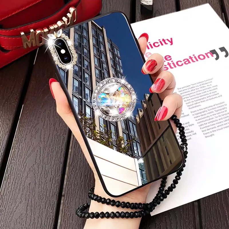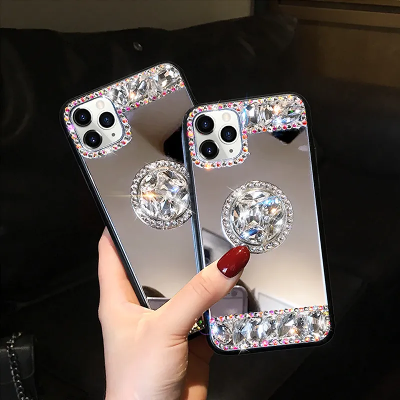 С украшением в виде кристаллов Зеркало Алмазный чехол с кольцом для...