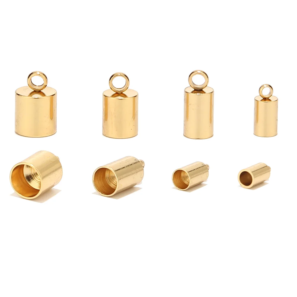 10 шт., золотистые обжимные колпачки для шнура из нержавеющей стали...