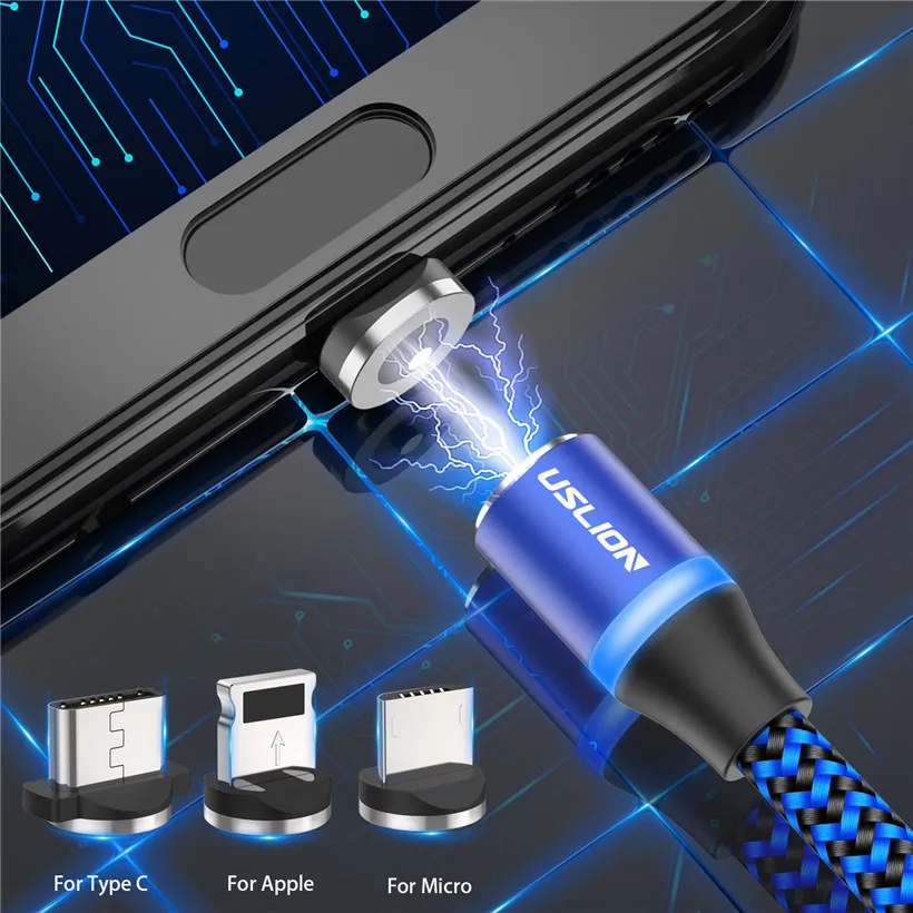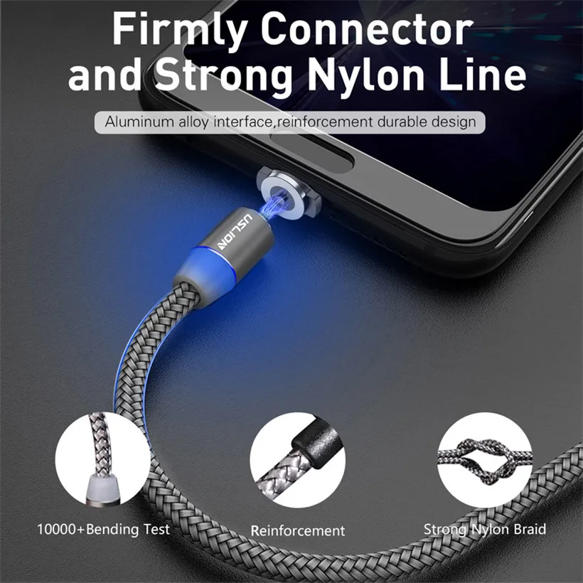Магнитный зарядный кабель USLION, Micro USBType CLightning, 12 м