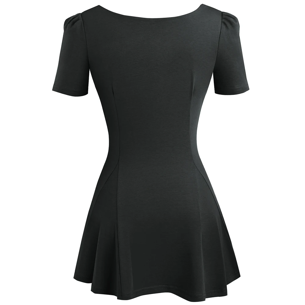 Новые модные женские туфли на молнии; Элегантные Короткие рукава квадратный воротник с оборками Топы для повседневной носки, одноцветные Цвет вязаная рубашка EB505