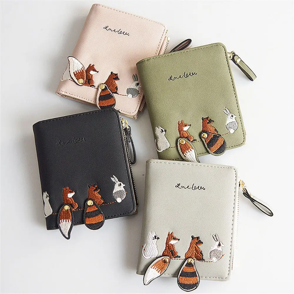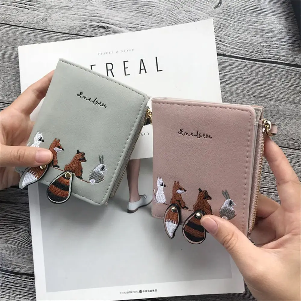 Милый мультяшный кошелек с животными, Портативная сумка для ключей на молнии, модные женские кошельки для девушек, держатель для карт из искусственной кожи, клатч, короткая Сумочка для денег