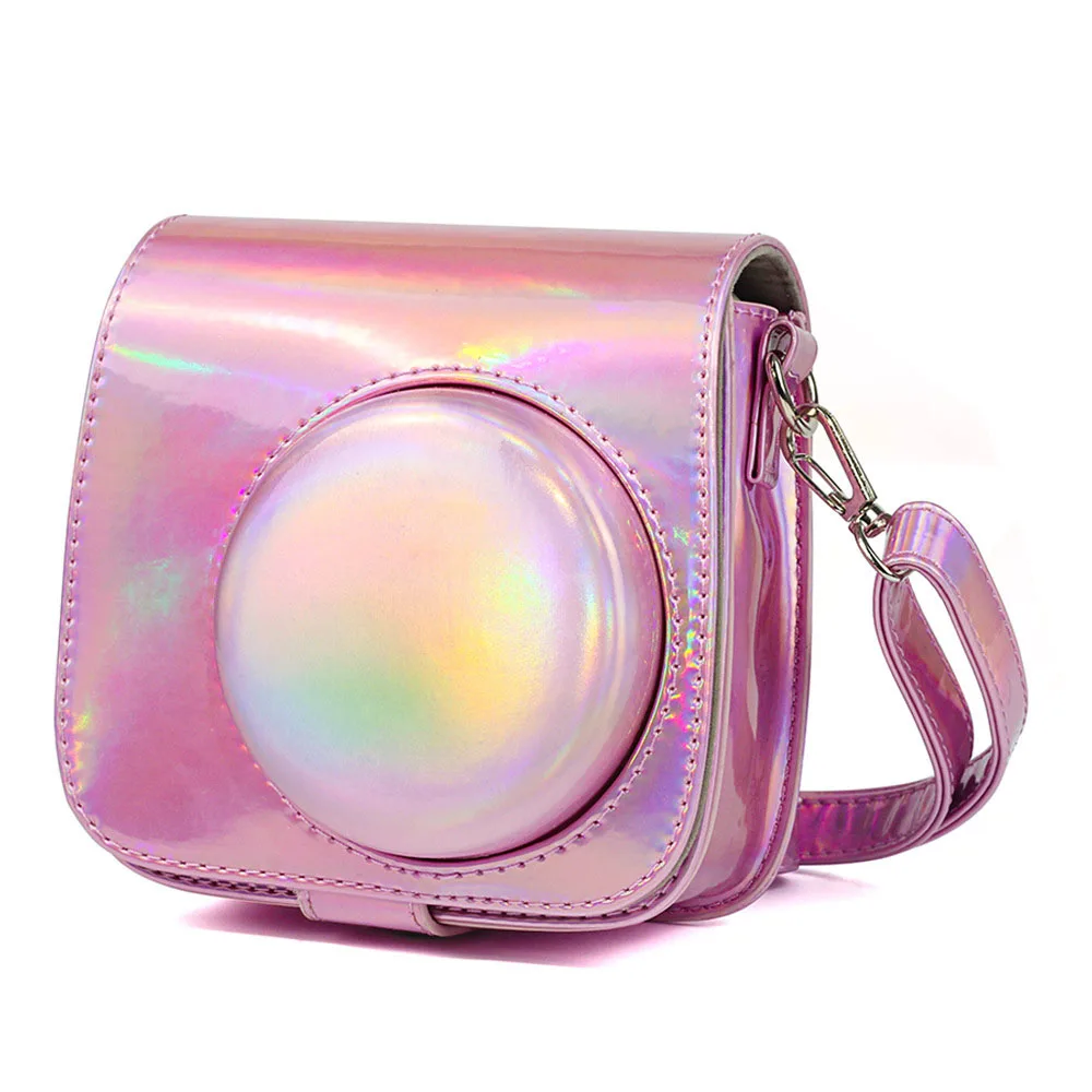 Для Fujifilm Instax Mini 8 Mini 9 Instant Camera PU Кожаный Модный Блестящий розовый чехол для переноски сумка с плечевым ремнем
