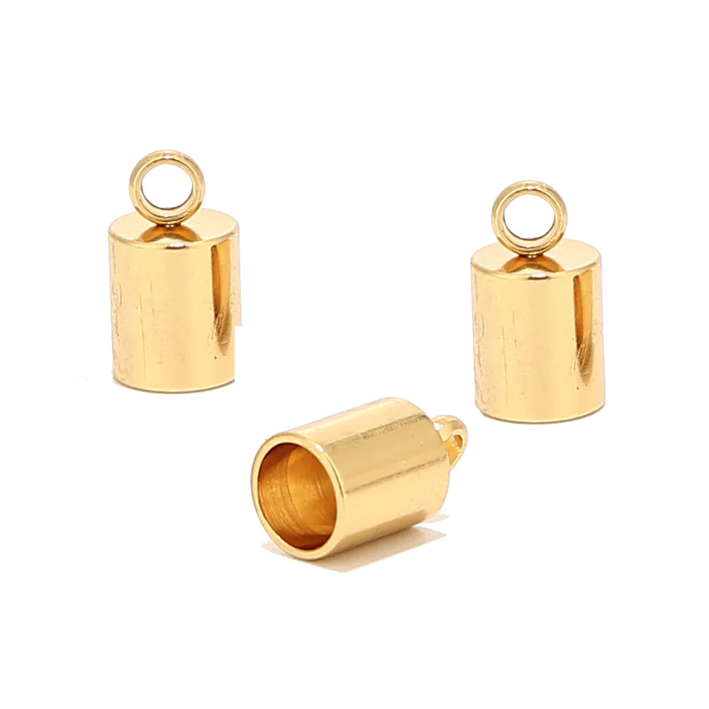 10 шт., золотистые обжимные колпачки для шнура из нержавеющей стали...