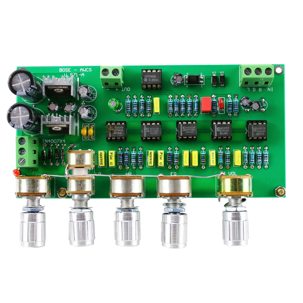Плата представляет собой плату предварительного усилителя сабвуфера, напрямую подключенную к динамику, не будет звучать, необходимо подключить плату усилителя чистой мощности, изготовленную из активного сабвуфера для звука, плата чистого усилителя мощности после мощности в соответствии с индивидуальными потребностями выбранной степени удара, мощность платы усилителя большая, поэтому эффект басов более шокирует.