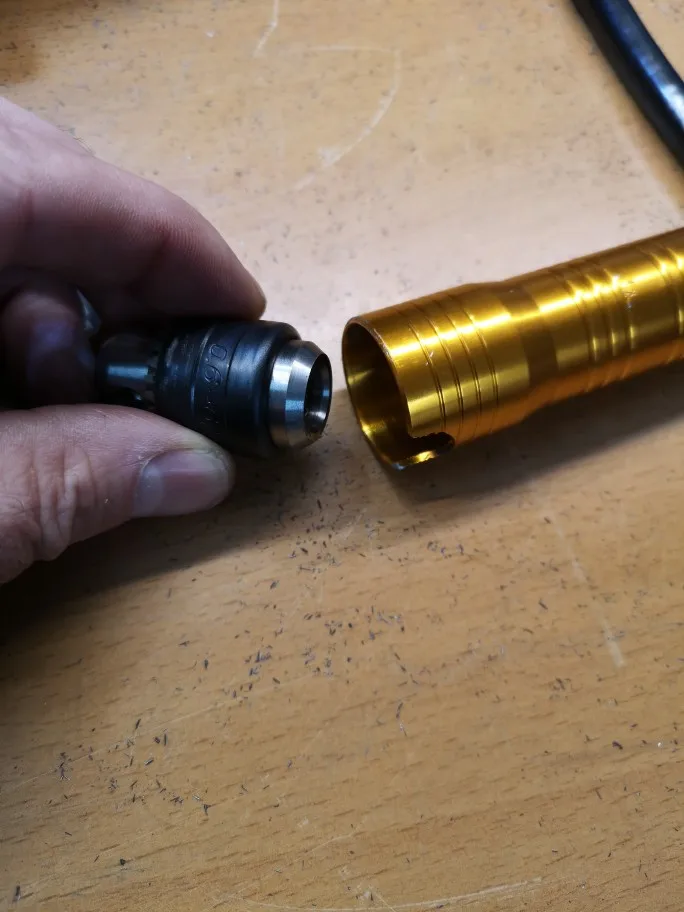 Данный продукт из серии сделай сам. Откровенное говно, брак. Патрон бьет ужасно. Разобрал, внутри два подшипника 608Z, которые болтаются на валу! Вал подшипников -5 соток. Выточить новый вал не получится, одно целое с патроном. Паяльная кислота+припой, наплавил вал. Подшипники с индексом Z а закрыты с двух сторон?должно стоять ZZ ? люфт ужасный! Поменял на подшипники 608zz abec7-p4. Красивая ручка из алюминия является корпусом подшипников, и подшипники в ней тоже болтаются! Пришлось нанести припой и на обойму подшипника.Привод внутри сухой! набил смазки шрус. Трос толстый, но в пружине, поменял на тефлоновый рукав. В общем эту вещь берут мастера, и из говна можно сделать нормальный рабочий инструмент. Но! он тяжелый и очень не удобный в руке. Делаем выводы. Продавец не порти себе репутацию, не продавайте брак.