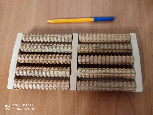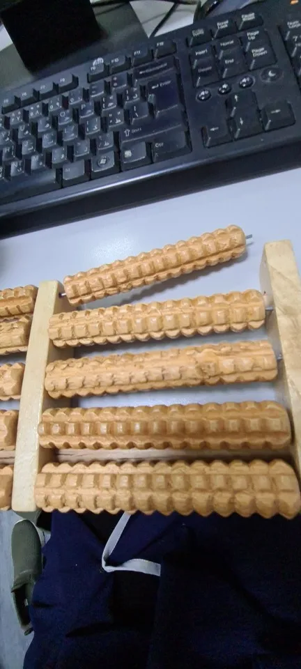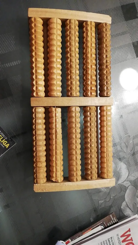 Очень приятный массаж ног, как мне нужно. Массажные колеса Расслабили ноги после тяжелой работы. Моей стопе нравится этот массаж. Древесина не высокого качества, мой товар не был хорошо обрезан. Обрезаны только колеса. Минный массажер пришел с супер экономией в течение 2 месяцев, я думаю, это из-за covid. Хорошо, отделка немного украшена. Но за дешевую цену я заплатил за это, массажер хороший :)