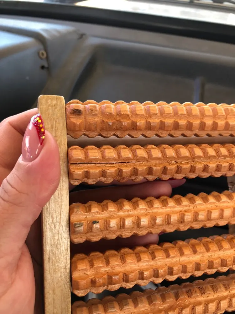массажёр и правда из дерева, сделан просто и хорошо. пришел за неделю до Рязани