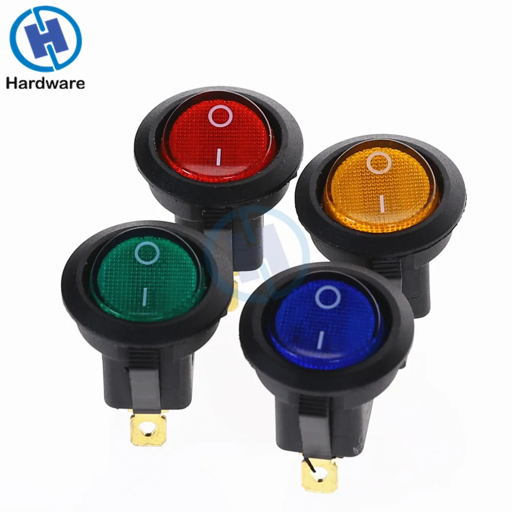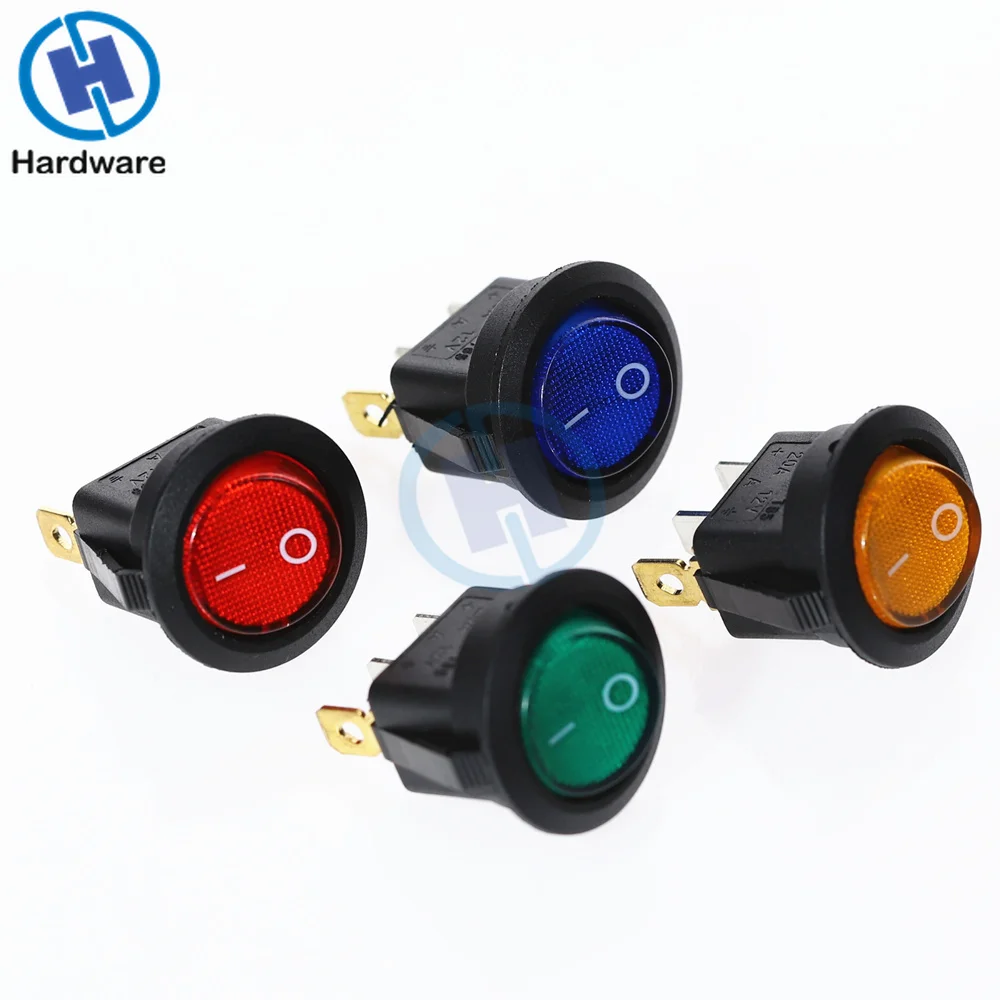 Светодиодный кулисный переключатель, 10 шт., 12 В, 3pin, зеленый, синий, желтый, красный, Точечный светильник SPST для автомобиля, лодки, Автоматическое включениевыключение