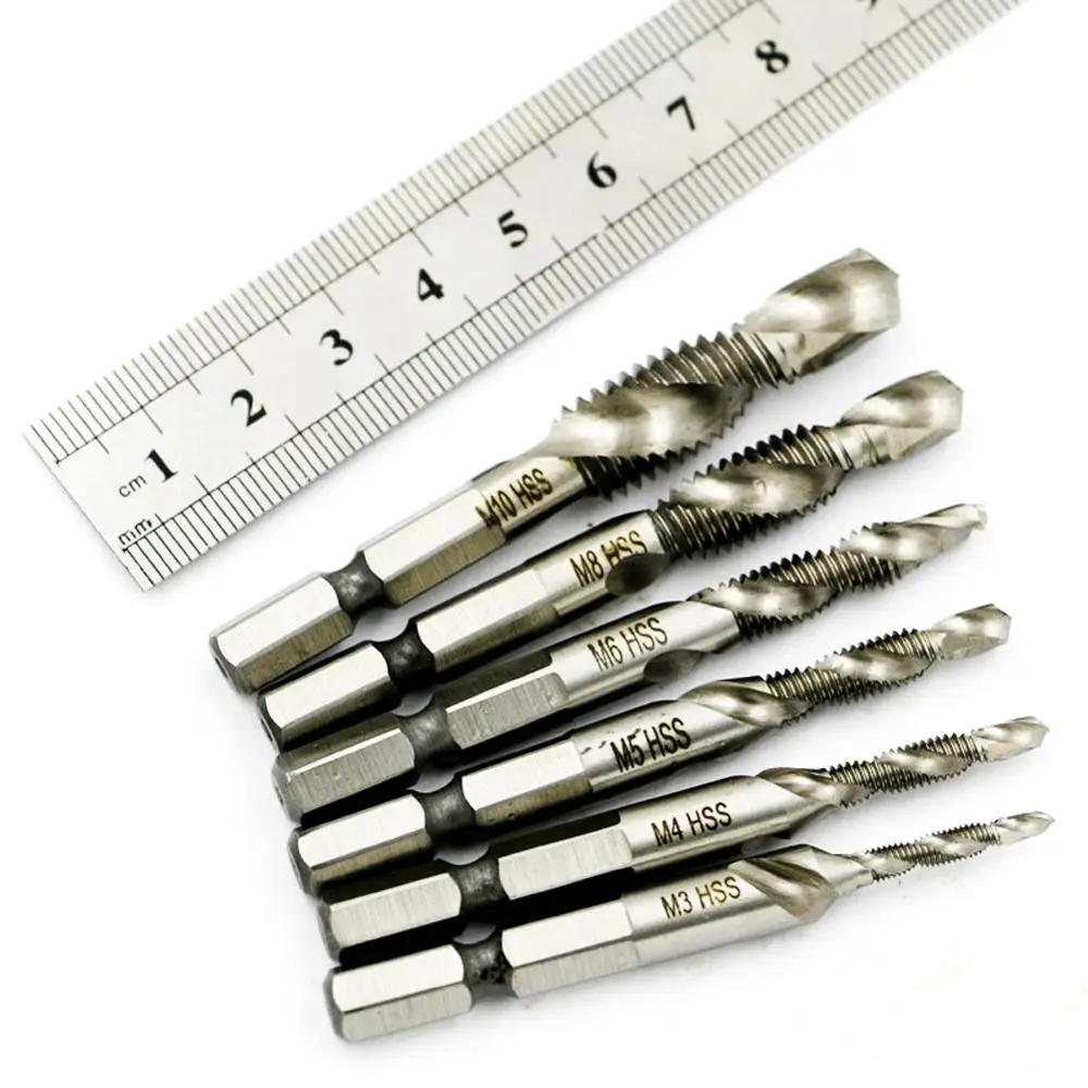 6 шт шестигранный хвостовик высокоскоростные Стальные Спиральные краны с винтовой резьбой набор сверл