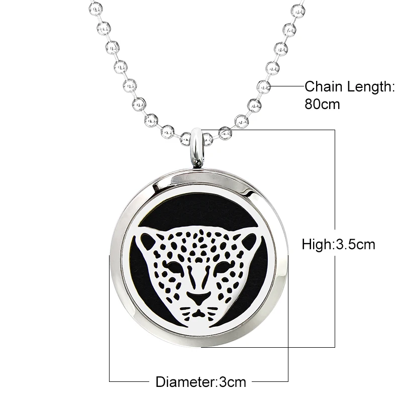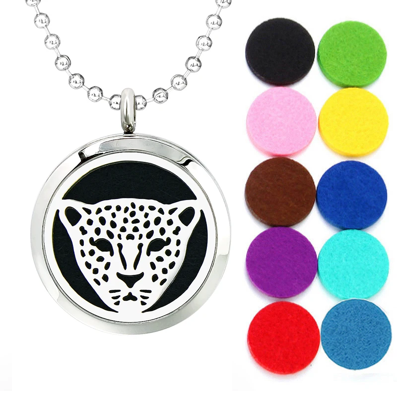 Ожерелье с подвеской-диффузором из нержавеющей стали 316L, женское ювелирное изделие сделай сам, 30 мм, медальон для ароматерапии с леопардовым принтом и 10 подушечками
