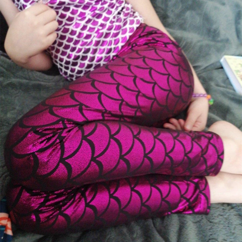 Чешуя Русалки с принтом; Сезон лето-осень; Леггинсы для маленьких девочек; Обтягивающие детские штаны; Леггинсы; Одежда для девочек; От 2 до 12 лет