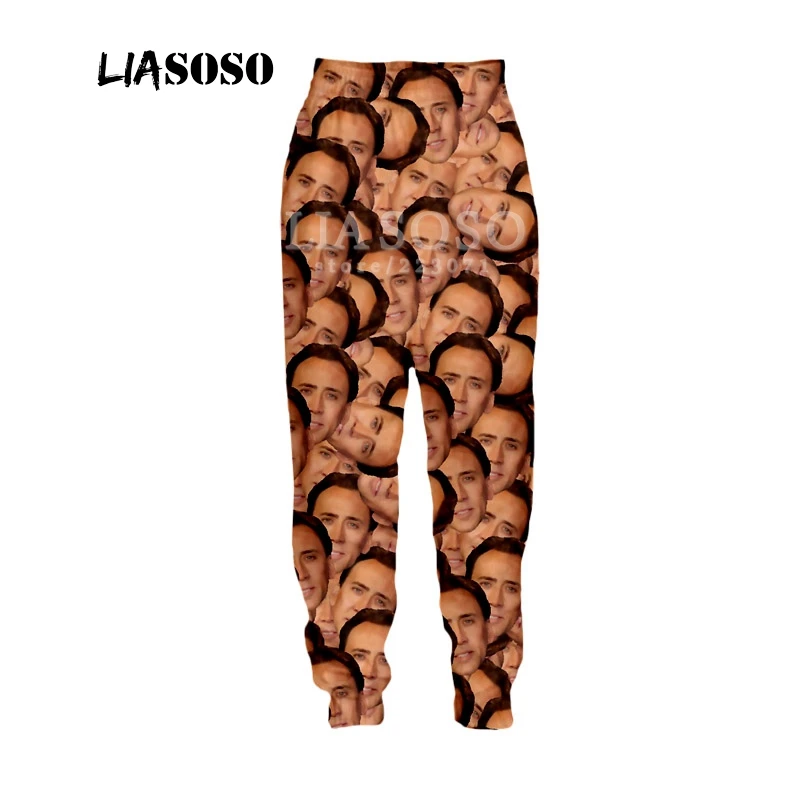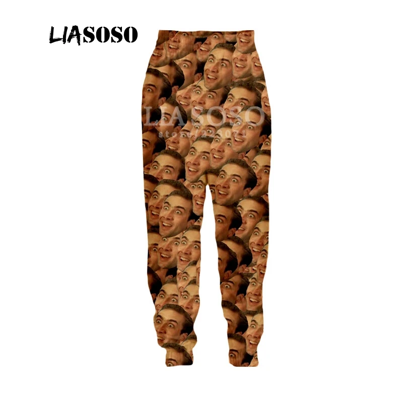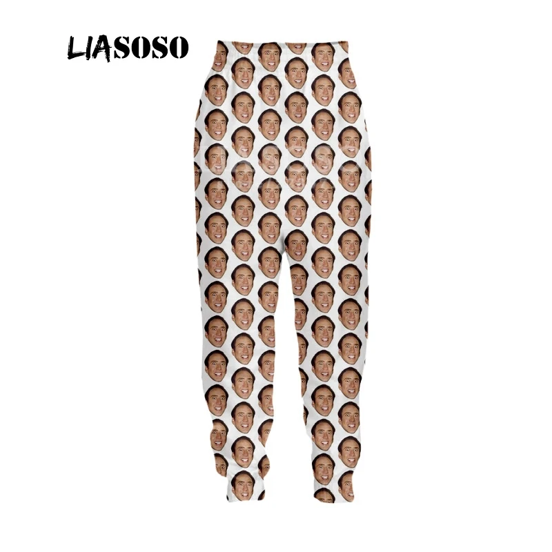 Осенние новые мужские и женские модные брюки liaseo с 3D рисунком звезд Николаса Кейджа, спортивные свободные брюки для фитнеса в стиле хип-хоп