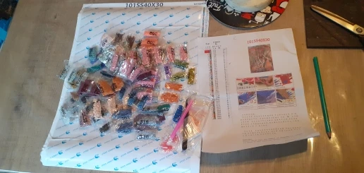 посылку получила. еще не выкладывала. все аккуратно упаковано. картина чуть занята. но думаю выправиться. набор полный. все чудесно. советую. с продавцом не общалась.