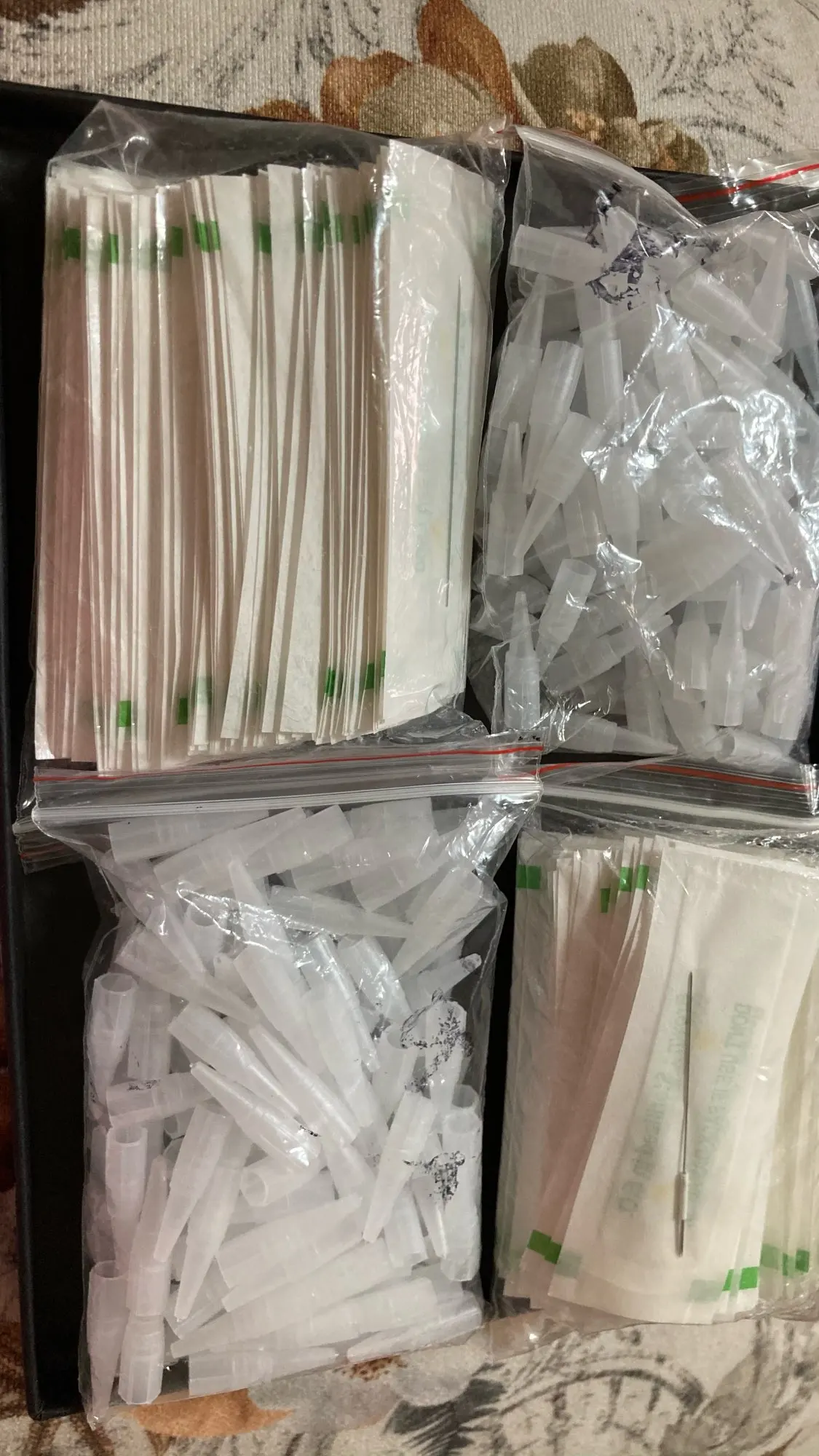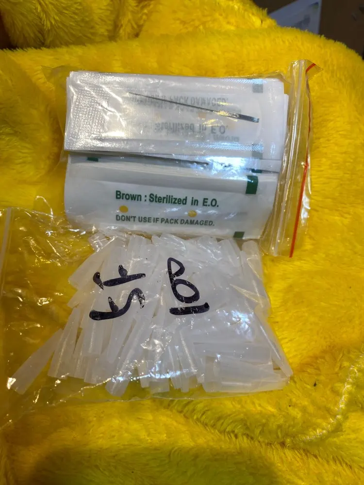 Иглы норм, но конец иглы тупой, не заточенный. Из-за этого иглодержатель быстро приходит в негодность. Разбивается частым втыкание тупым концом иглы(. Колпаки на гиан сан не подходят. Шире чем носик аппарата. Но подрезаю их и влезают. Не удобно, но норм. В след раз закажу другие.