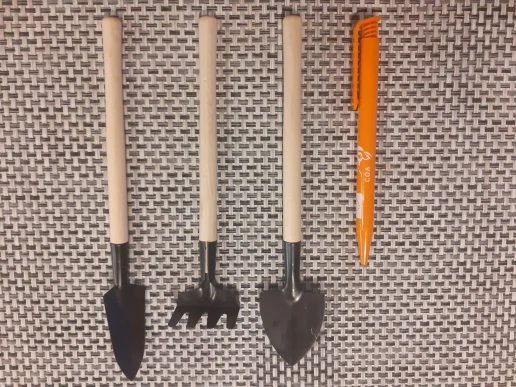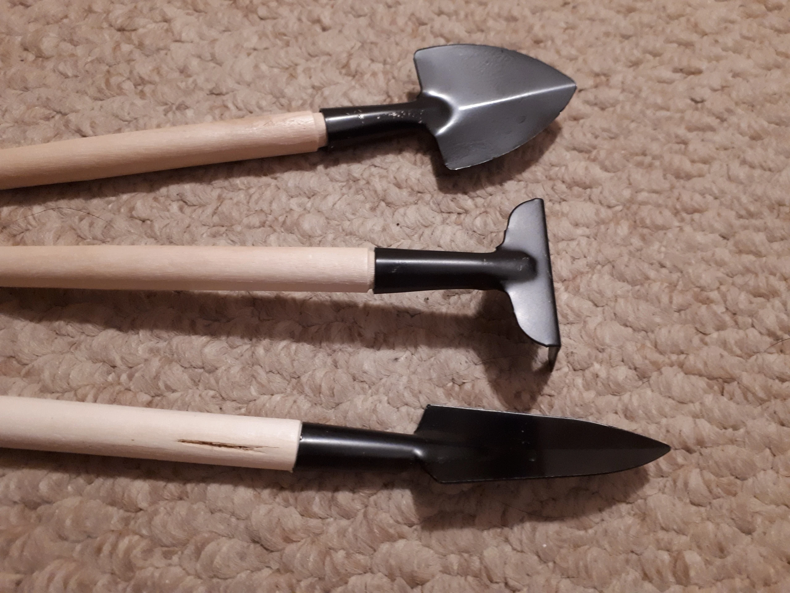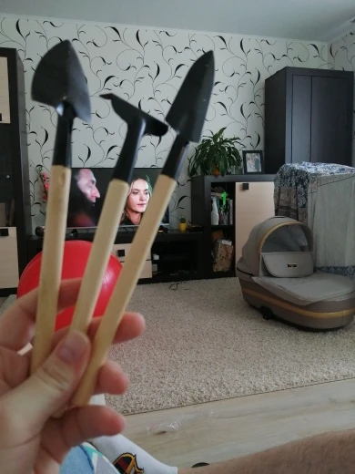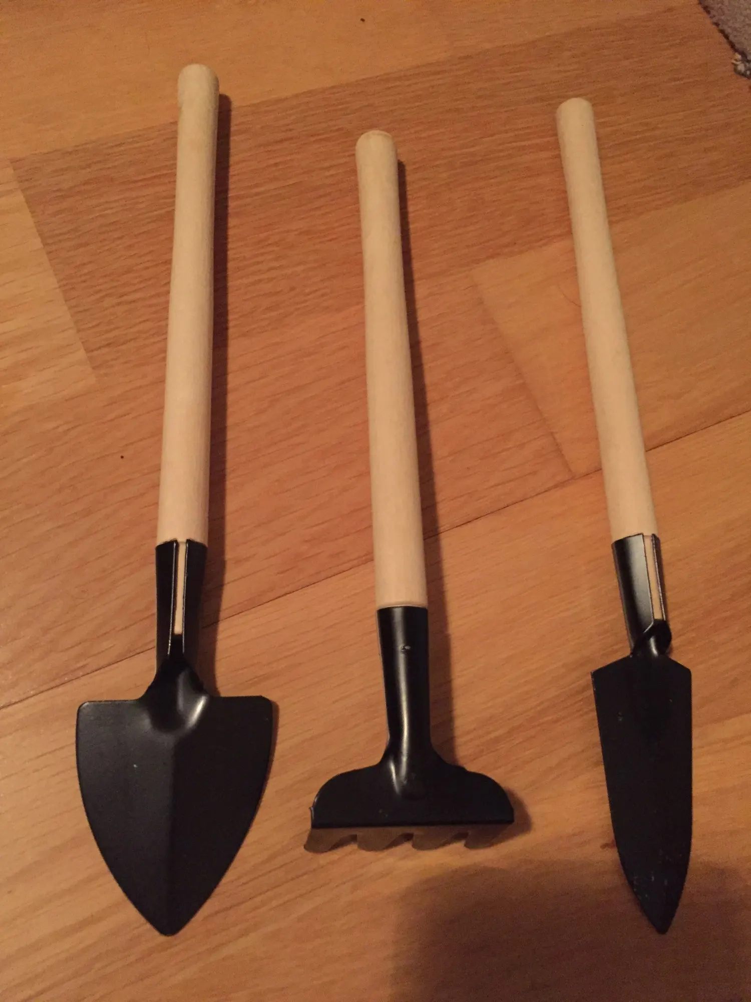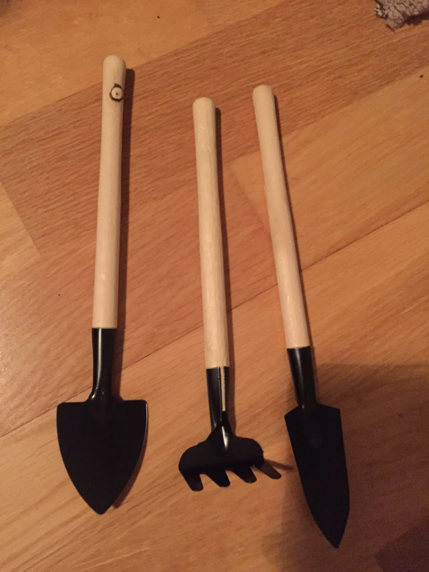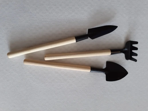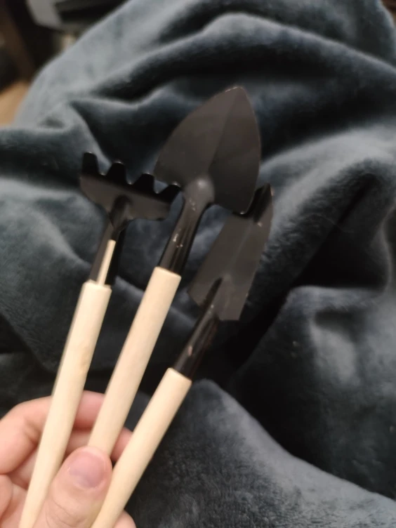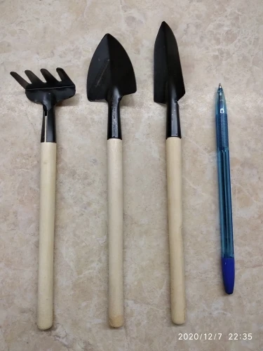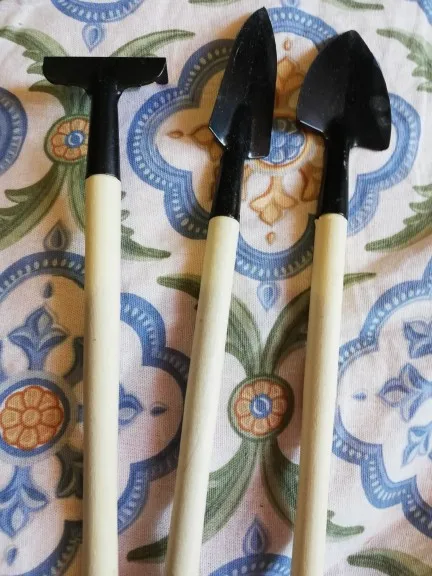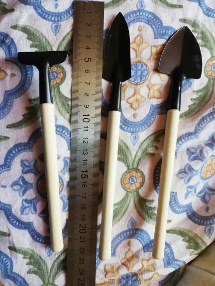 Товар соответствует описанию. Доставка в Украину заняла почти 2 месяца. Металлические части инструментов просто плотно насажены на черенки, не закреплены. Для пересадки мелких растений инструменты подойдут. Товар к покупке рекомендую. С продавцом необходимости общаться не было.