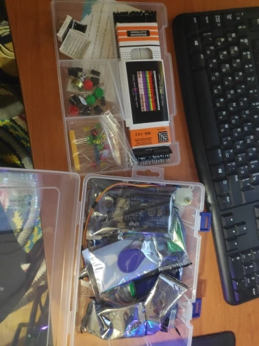 Описание:RFID Обучающий набор является входом в мастер-Набор обновлений, обновления размещаются в основном: 1,1602 I2C 1602 заменил экран для более удобного управления,2. Новый RFID модуль и RFID брелок и белая карта,3. Добавлен модуль часов DS1302,4. Новый модуль обнаружения звука,5. Новый модуль температуры и влажности,6. Новый модуль обнаружения уровня воды,7. Добавлен модуль клавиатуры 4*48. Новый матричный модуль 8*8 Посылка включает в себя:1 X доска UNO1 х USB кабель1 х кабель для скачки1 х макетная доска5 X светодиодный светильникРезистор в 1 упаковке1 X Женская и мужская линия dupond1 X потенциометр1 зуммер1X74HC5951 X инфракрасный приемник1 X LM351 X датчик пламени1 х шариковый переключательФоторезистор-1 шт.1 Кнопка Ключа1 пульт дистанционного управления1 х 4-разрядный дисплей трубки1X8*8 матричный модуль1 X 1-разрядная витринаПлата драйвера шагового двигателя-1 шт.1 шаговый двигатель1 X сервопривод 9g1 ЖК-дисплей IIC 1602Модуль джойстика XY-1 шт.1 X модуль температуры1 X модуль тестирования водыМодуль RFID-1 шт.1 х RFID брелок1 х RFID белая картаЗвуковой модуль-1 шт.1 X релейный модуль1 X модуль часов1X4*4 клавишная панель1 цветной модуль RGB 31 х 9 в батарейный отсек
