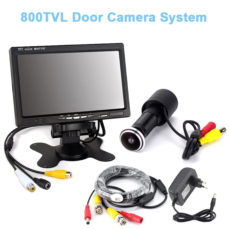 Цветная дверная камера 800TVL + 7-дюймовый монитор + кабель 5 м + адаптер питания