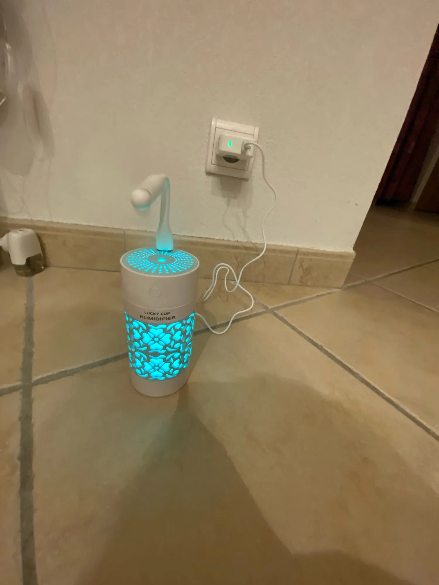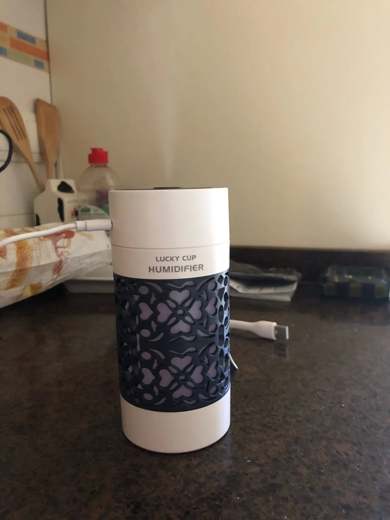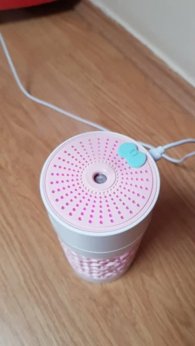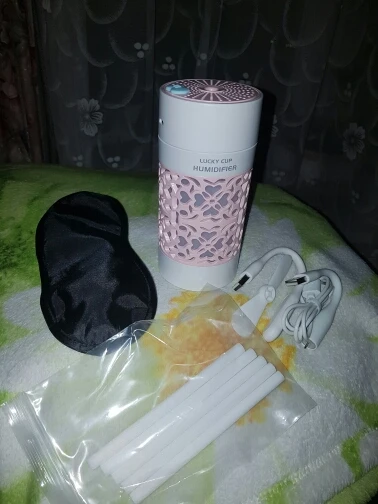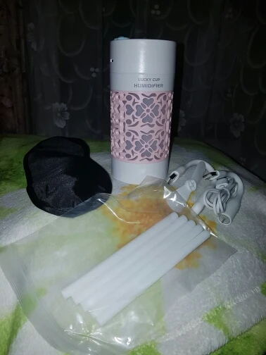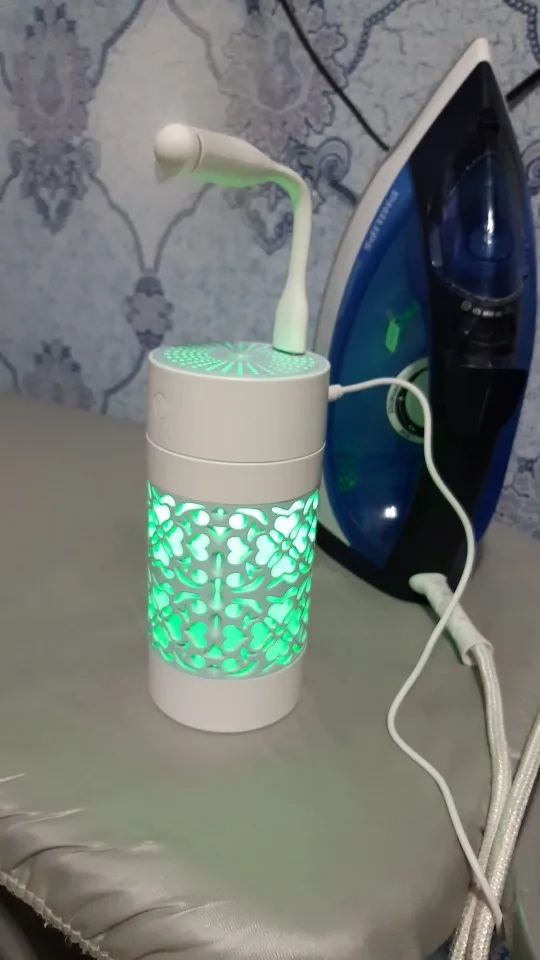 Хороший продукт увлажнитель с USB Флекси вентилятор и свет вложения бонуса. 250 мл. 3 часа работы. Быстрая доставка в среднем. Розовый дизайн с белым