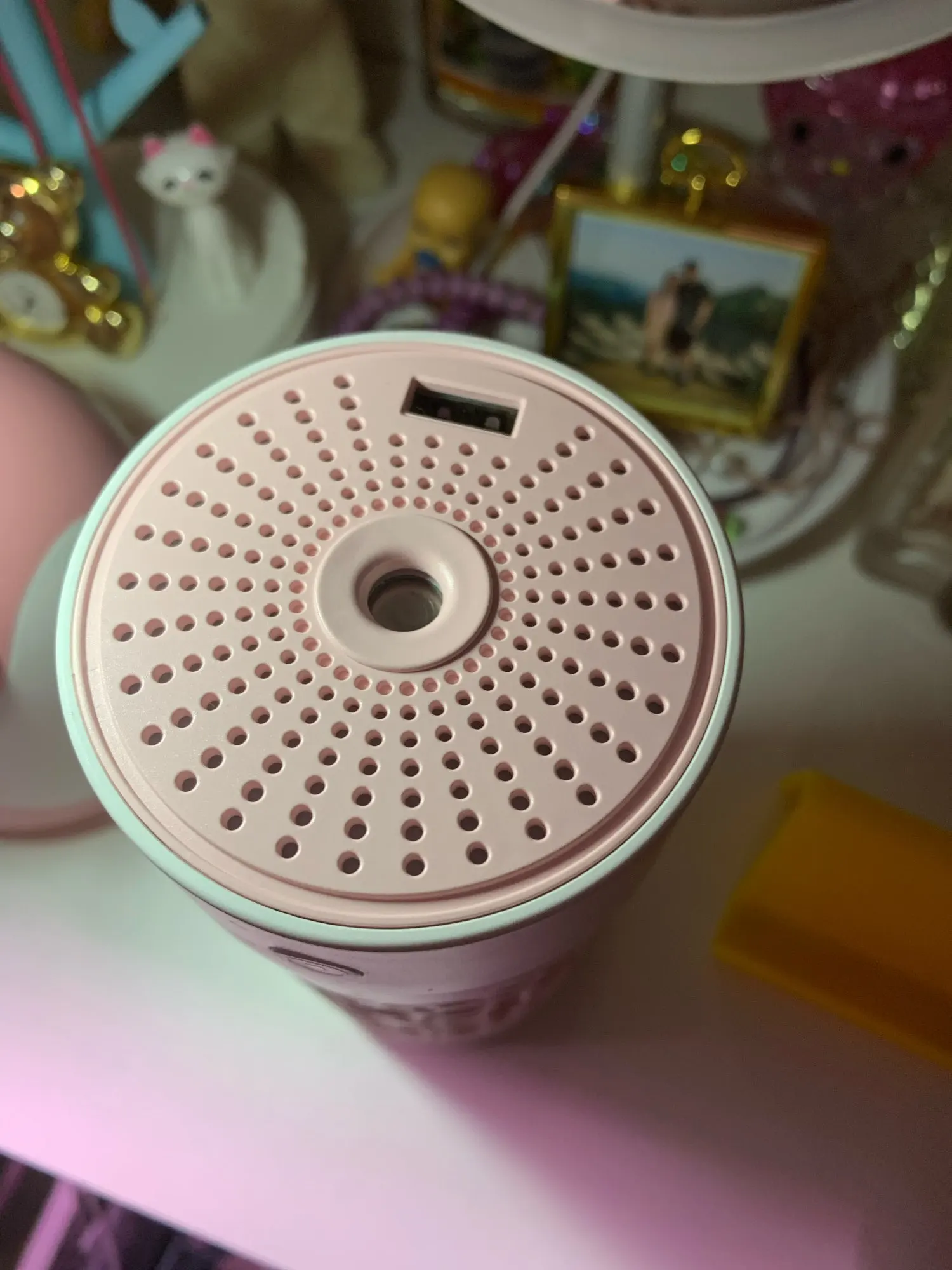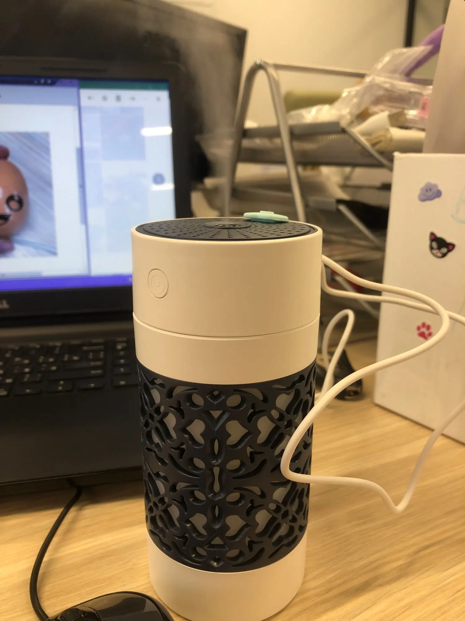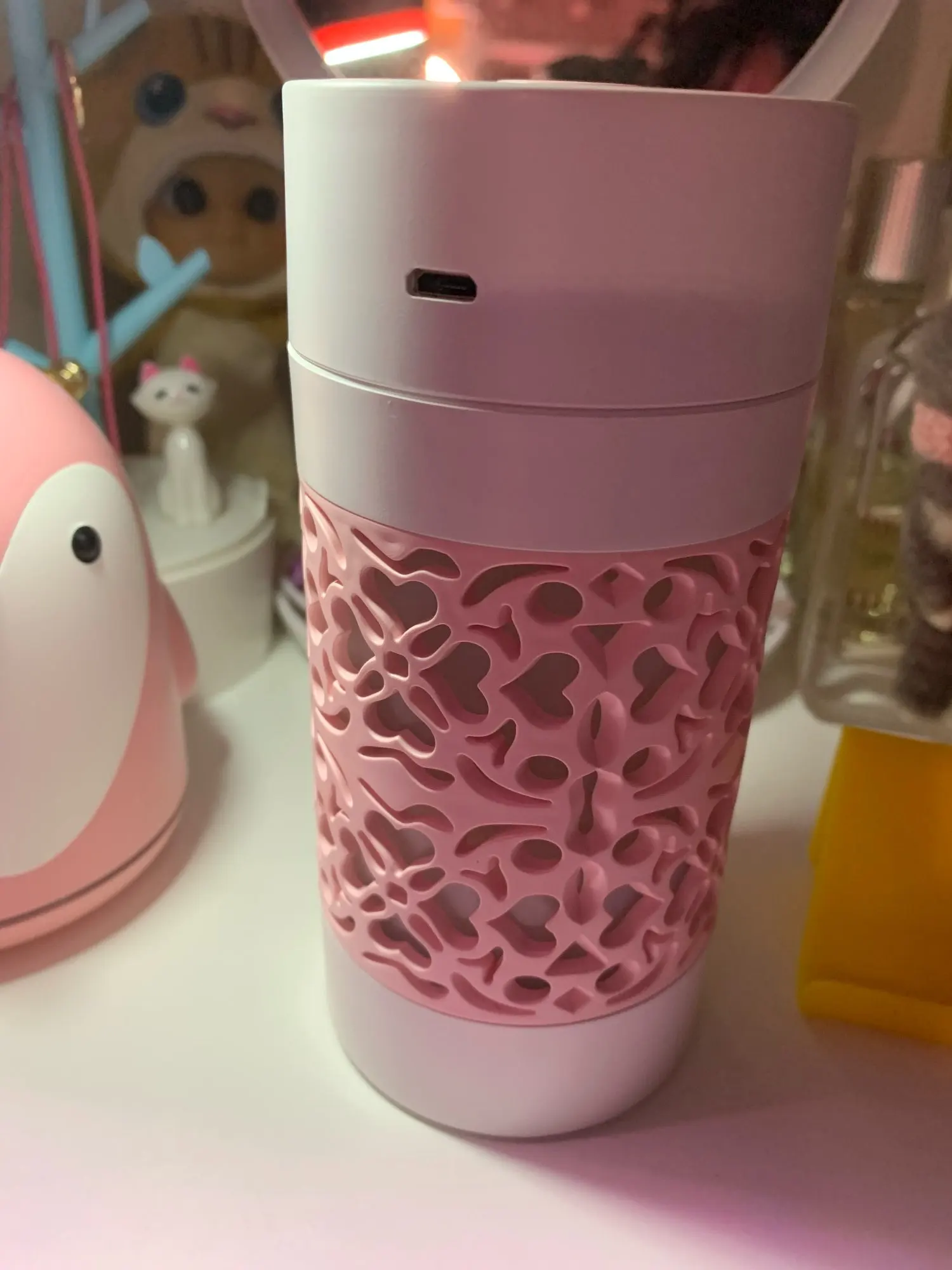 Хороший продукт увлажнитель с USB Флекси вентилятор и свет вложения бонуса. 250 мл. 3 часа работы. Быстрая доставка в среднем. Розовый дизайн с белым