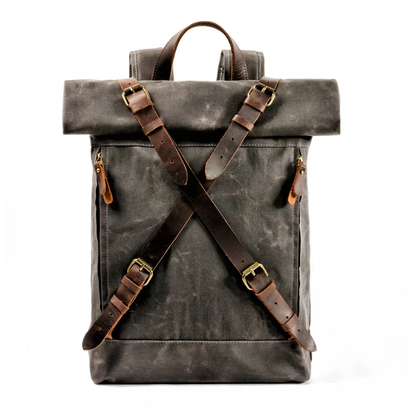 Рюкзак MUCHUAN унисекс из жесткой вощеной холщовой кожи, водонепроницаемый мужской ранец с крестом-накрест для путешествий, сумка для ноутбука 15 дюймов