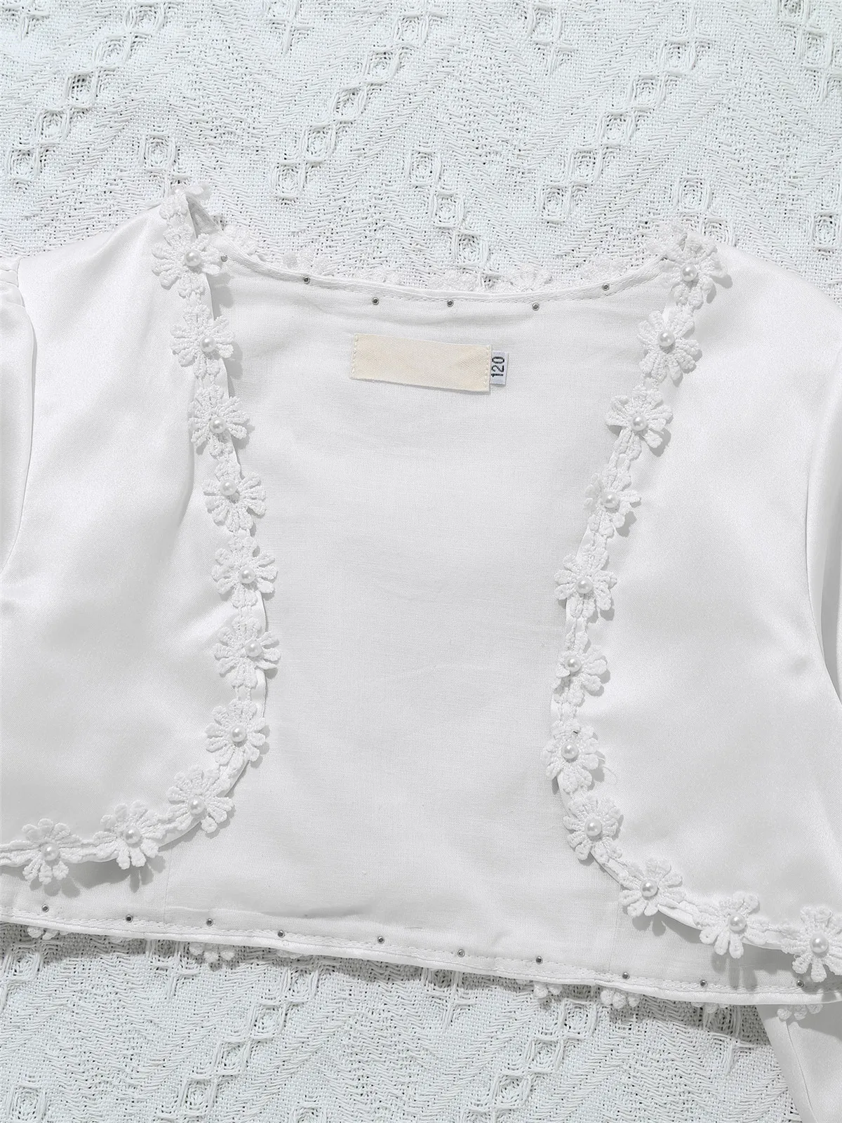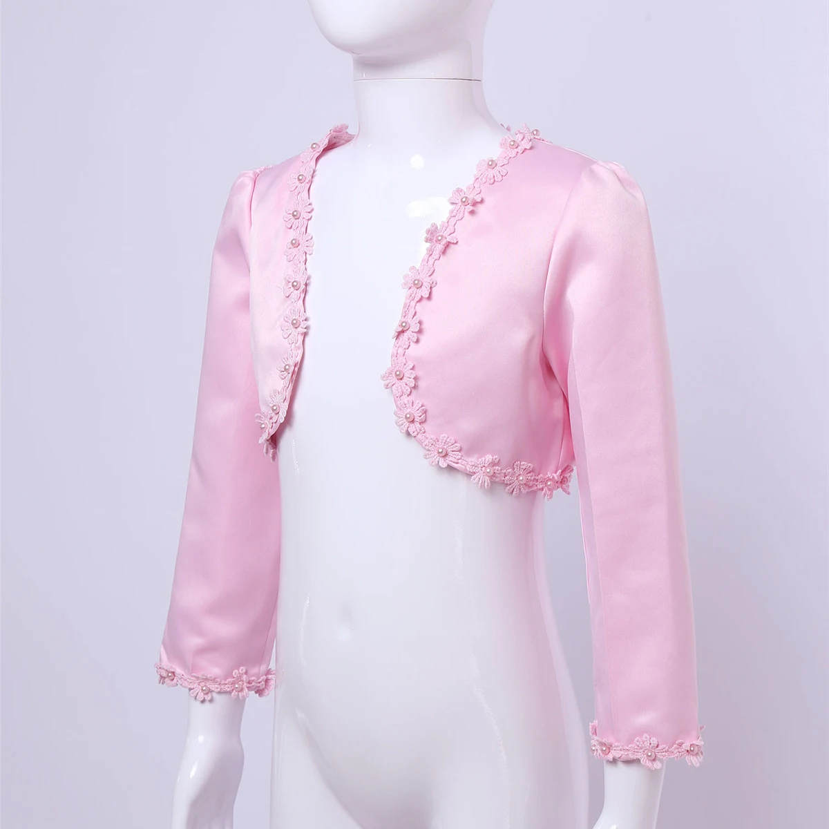 Детская куртка-болеро с длинным рукавом для девочек, искусственное платье, накидка с 3D цветами для свадьбы, дня рождения, вечеринки принцессы