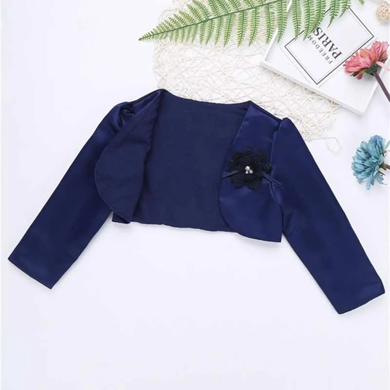 Детское болеро с длинными рукавами для девочек, короткий свитер кардиган, платье с объемным цветком, платье принцессы на свадьбу, день рождения