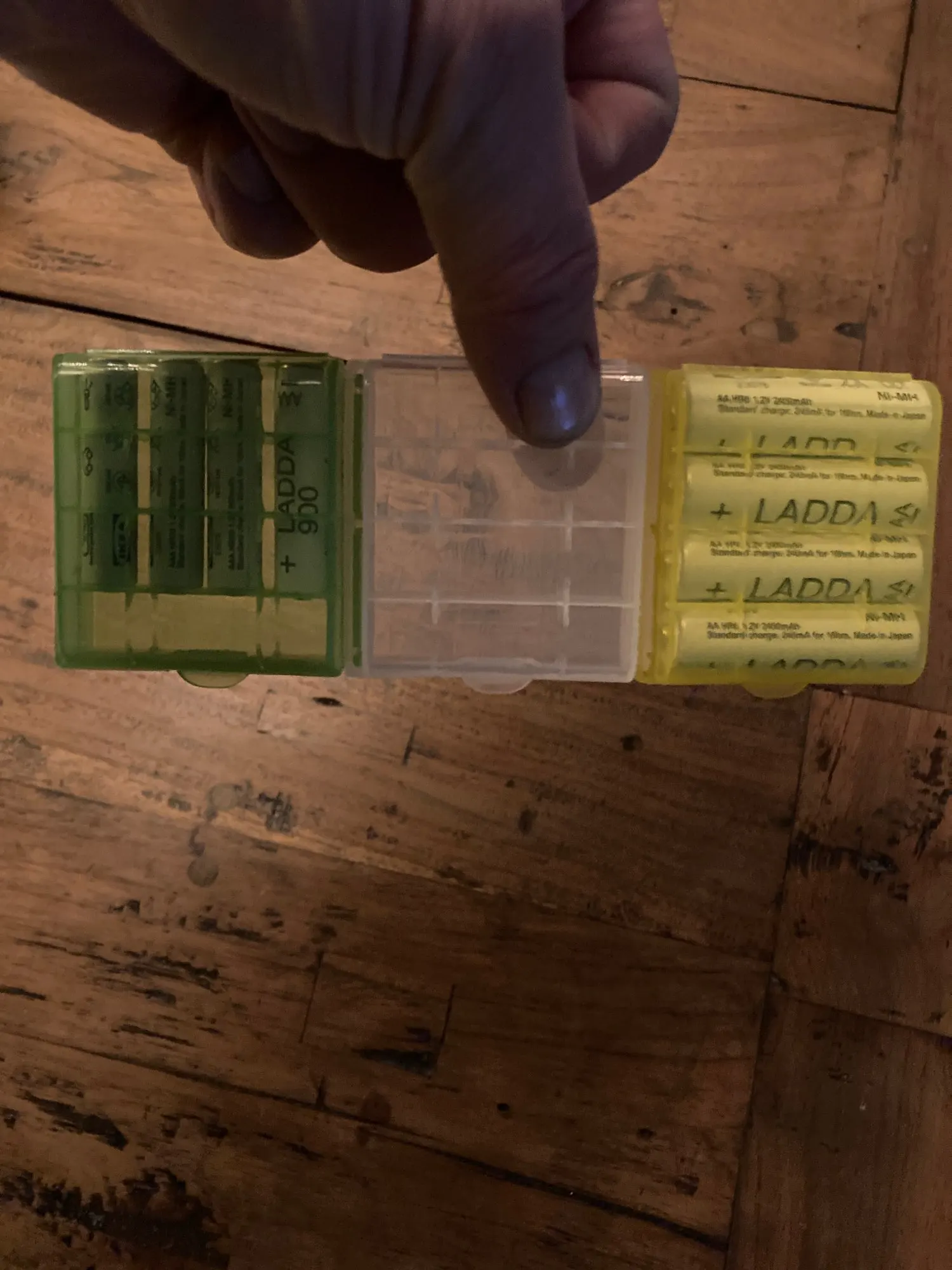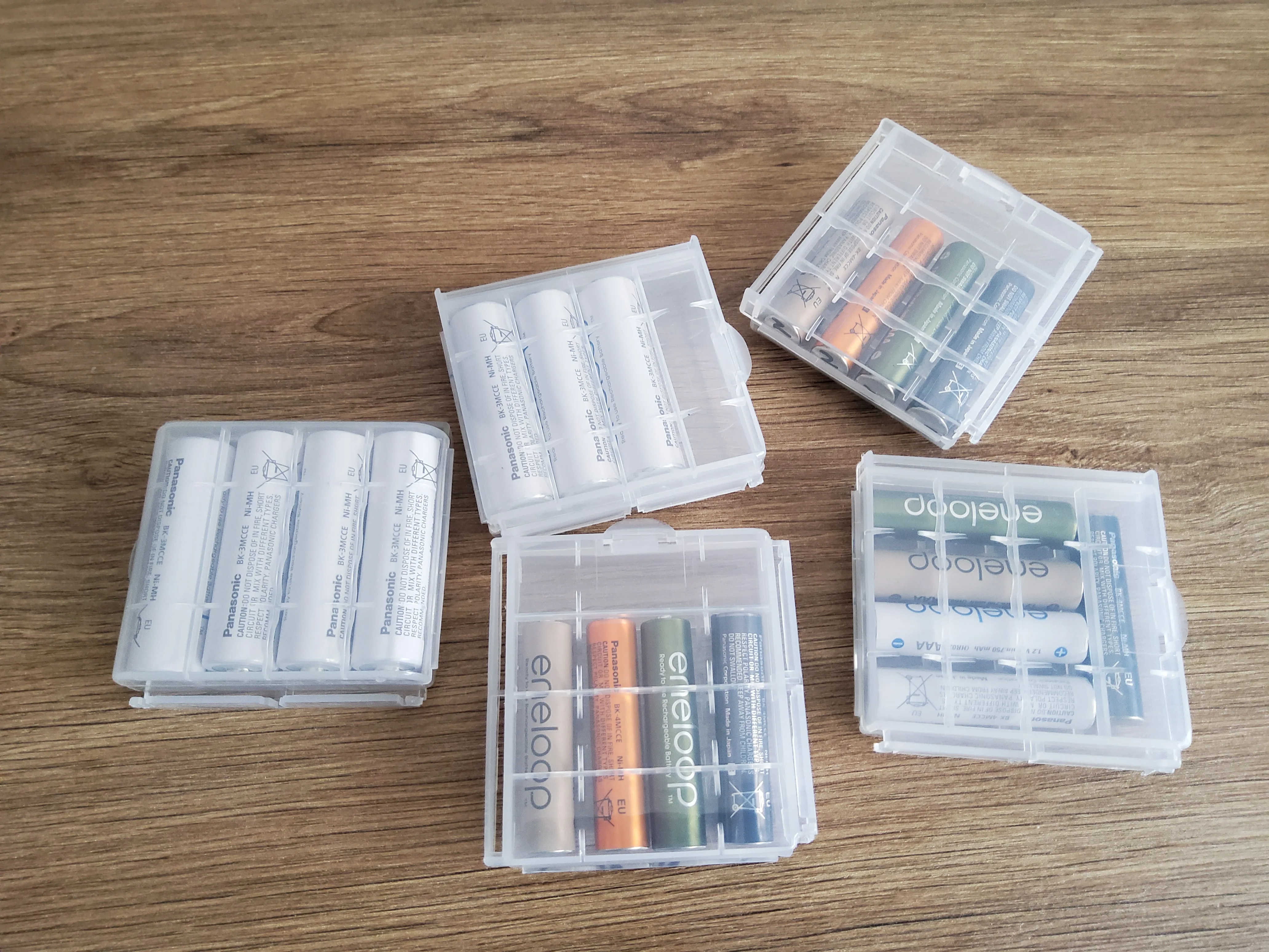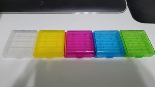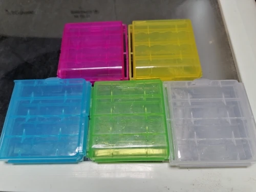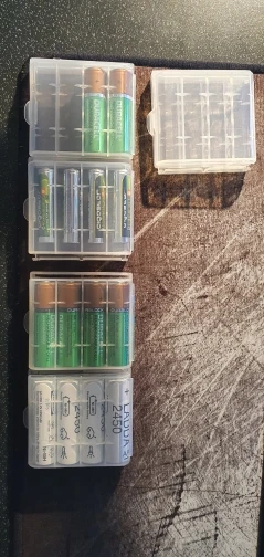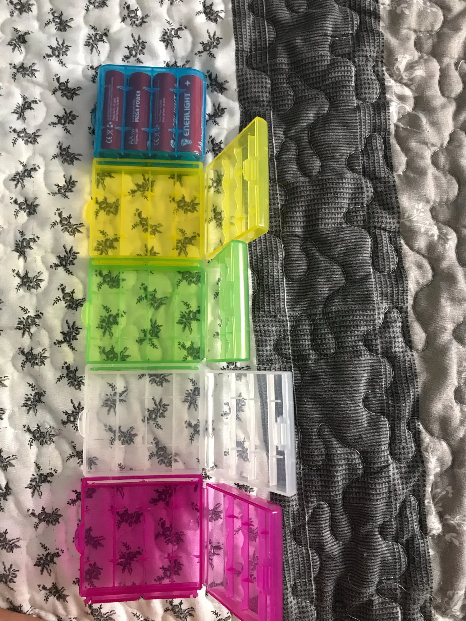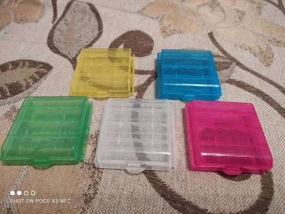Удобные коробочки. Хорошо что цвета разные. Легче запомнить какие батарейки сели, какие нет.