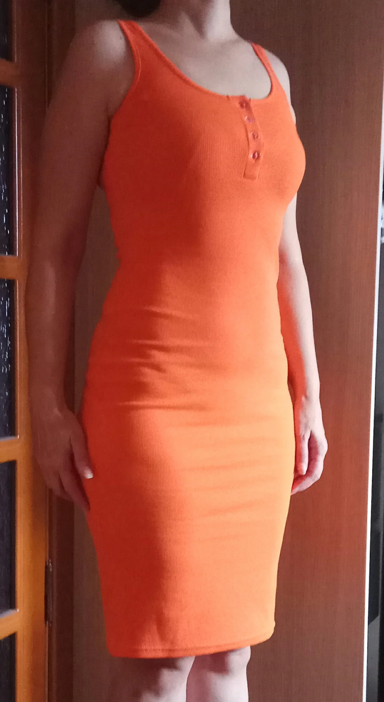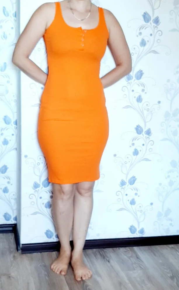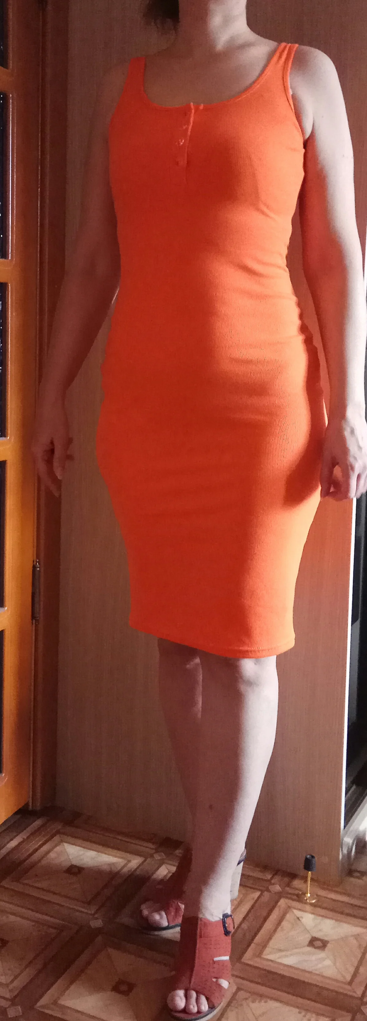 товар доставлен быстро. Платье хорошего качества. Яркий цвет, эластичная , приятная на ощупь ткань. Заказала платье размера L на параметры 92-62-92. Оказалось впритык, сильно обтягивает и на груди пуговки не застегиваются. Если был бы размер XL, то было бы супер