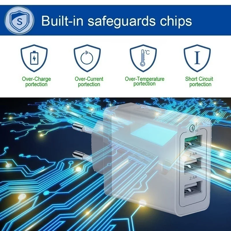 Зарядное устройство QC 3,0 с 3 USB-портами, 18 Вт