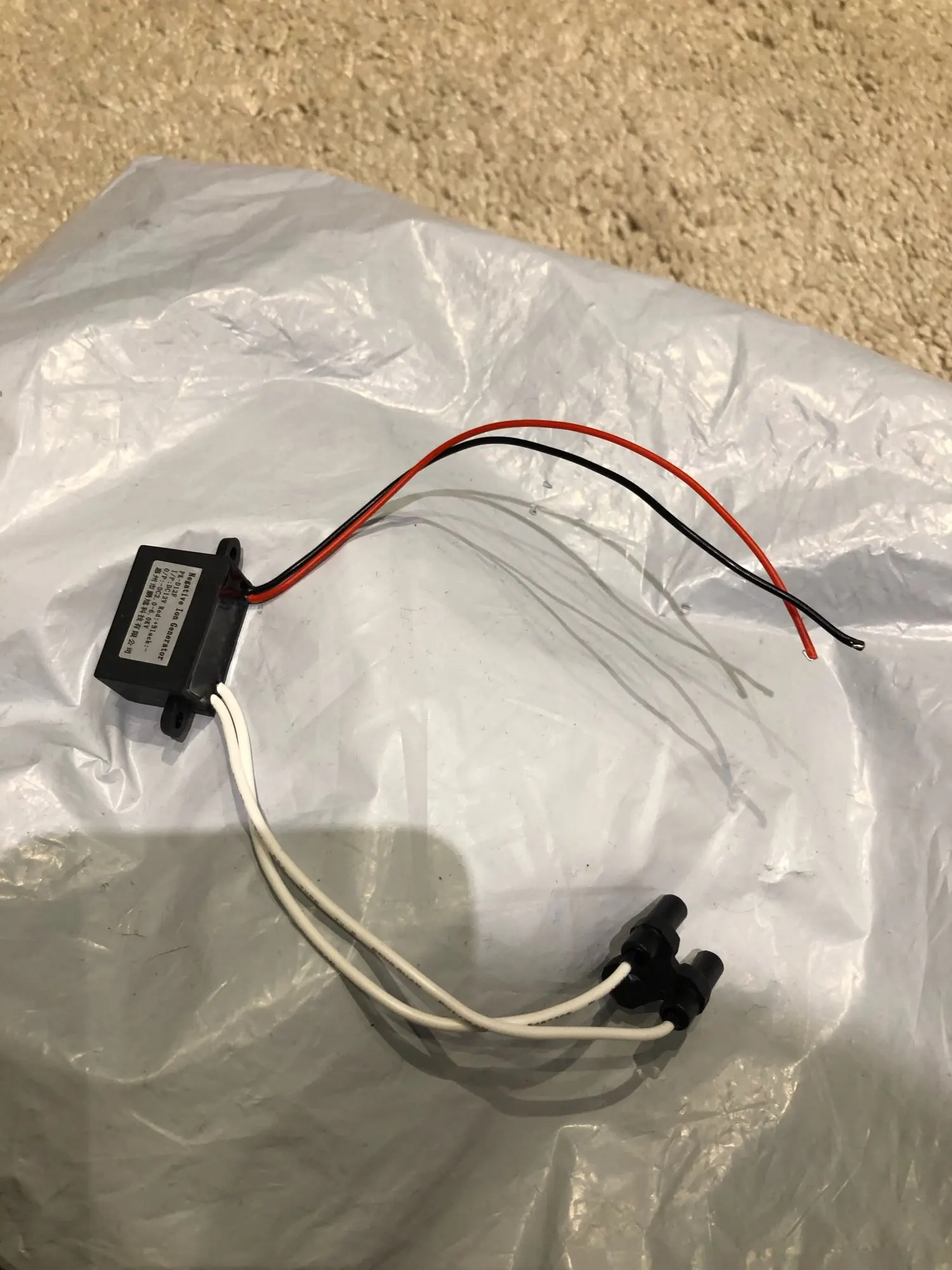 Спецификация:Тип: двойная головкаPK-D12FИсточник питания: мощность автомобиляОбласть применения: 11 ㎡-20 ㎡Объем очистителя воздуха: 50 м & sup3;/чВходное напряжение: D12VВыходное напряжение: DC-4.0KV01.0KVОтрицательная Концентрация ионов: ≧ 7x10 6 шт/см и sup3;(тест на 100 мм)Сопротивление изоляции: ≥ 40 МОм (500 В постоянного тока)Диэлектрическая прочность: AC3000V 50Hz 5mAНоминальная мощность: ≤ 1 ВтВходной ток: ≤ 20 мАКонцентрация озона: <0.05PPMРабочая температура: -10 ° ~ 50 °Рабочая влажность: 35% ~ 85%Температура хранения: -20 ° ~ 50 °I/P: D12V красный: + черный:-O/P: -DV2.0 ~ 6.0квМатериал: ABS + силиконовая линияРазмеры: 27x15x1 8 мм/1.06x0.59x0.71 '(прибл.)Цвет: черныйКоличество: 1 шт.