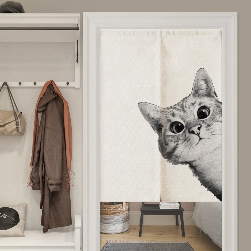 Черная, белая, мультяшная кошка, льняная дверная занавеска, Фотофон, украшение для входа в дом, настраиваемая занавеска
