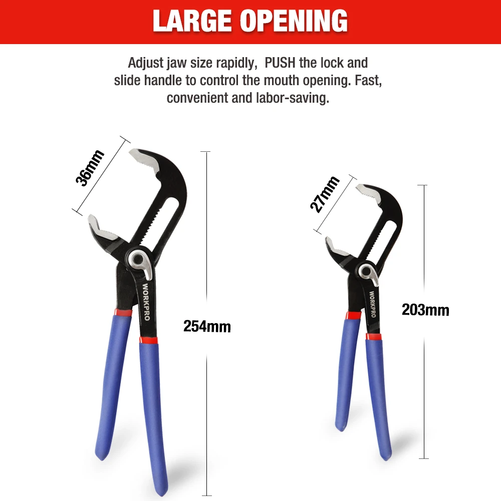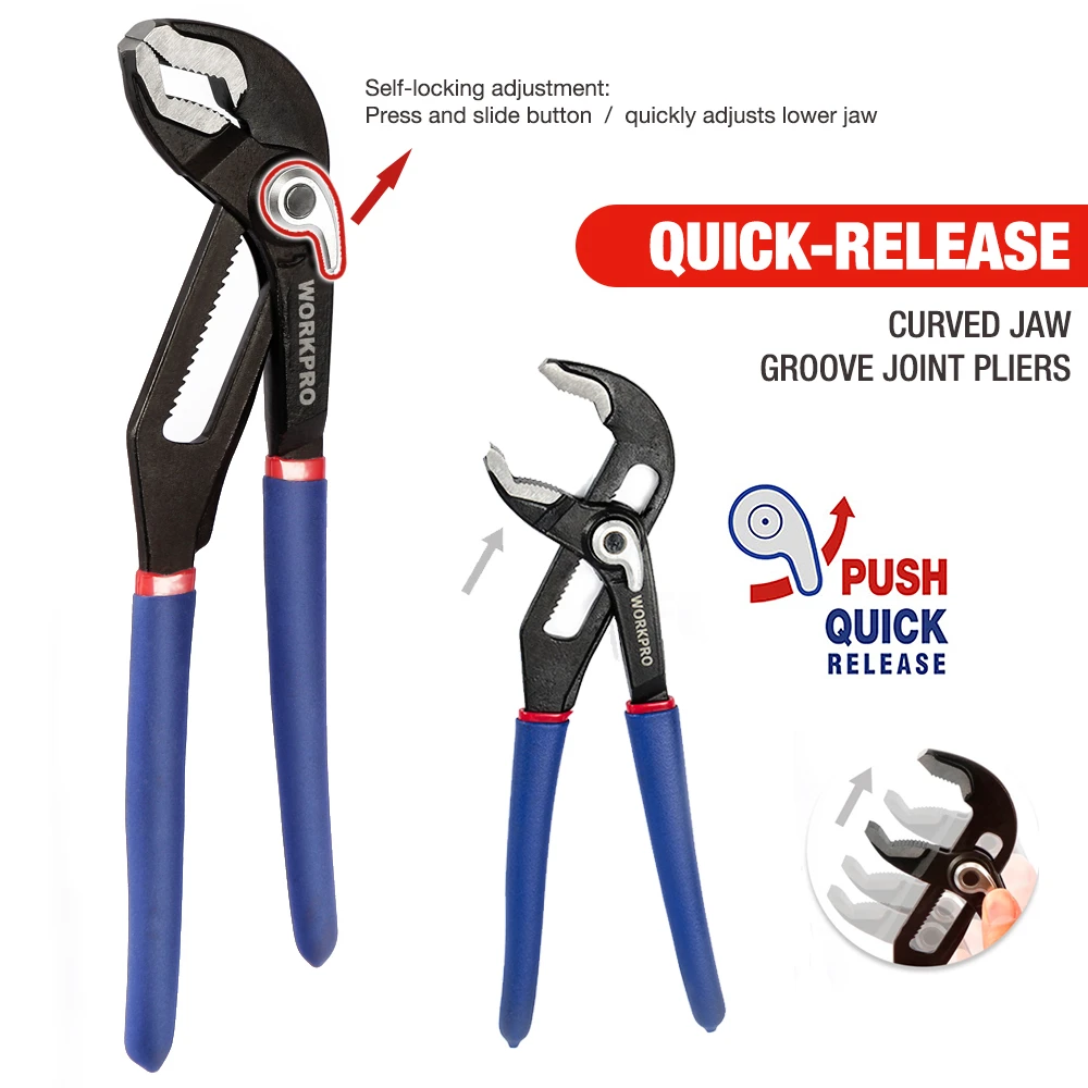 Плоскогубцы для водяного насоса WORKPRO, многофункциональные быстросъемные клещи с прямыми губками, 810 дюймов, 2 шт.