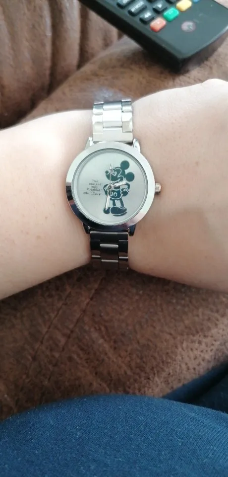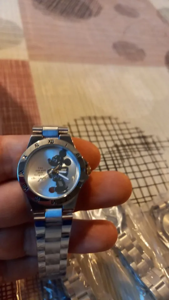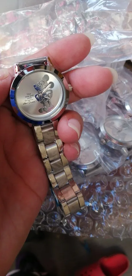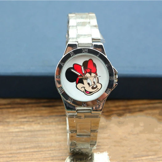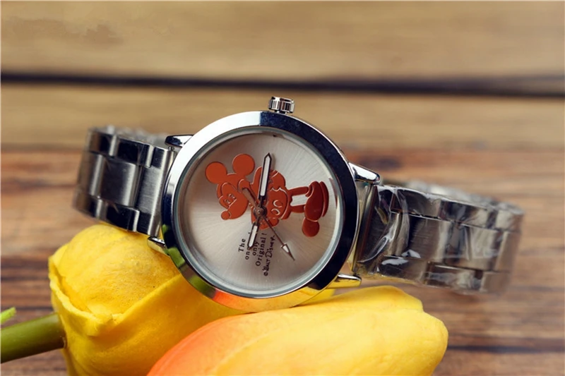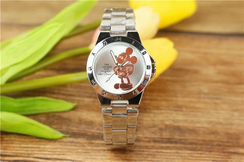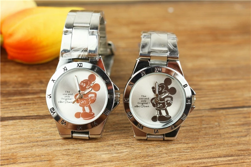 Часы для мальчиков и девочек, Стальные кварцевые часы с изображением Микки Мауса и Минни Маус