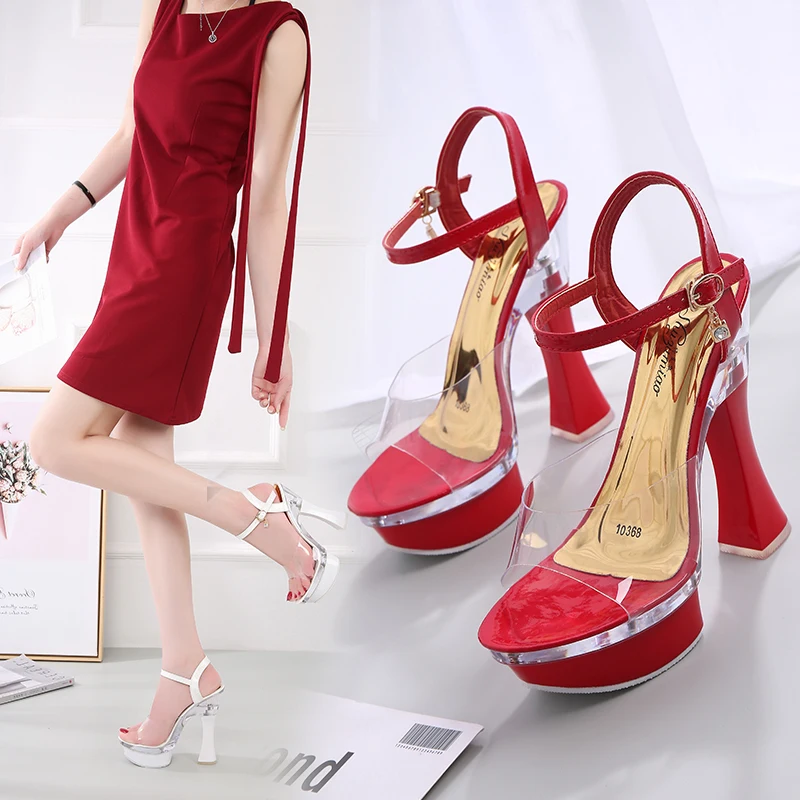 Женские босоножки на платформе, прозрачные сандалии с открытым носком, на высоком каблуке 14 см, обувь для подиума, 2021