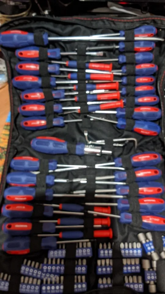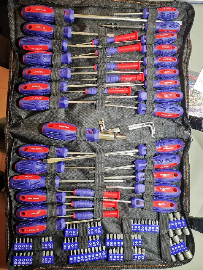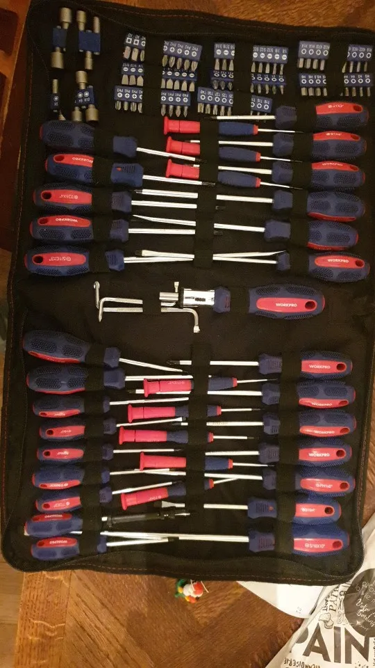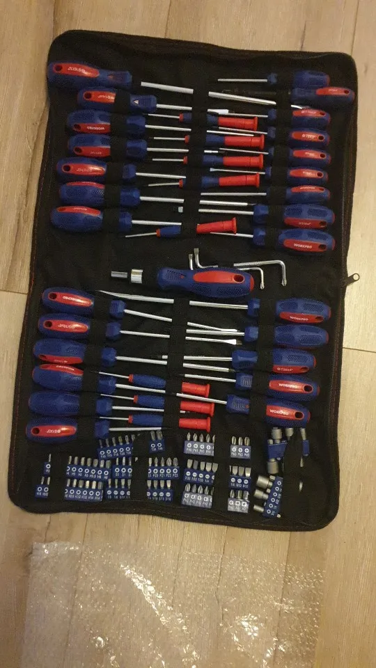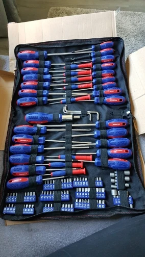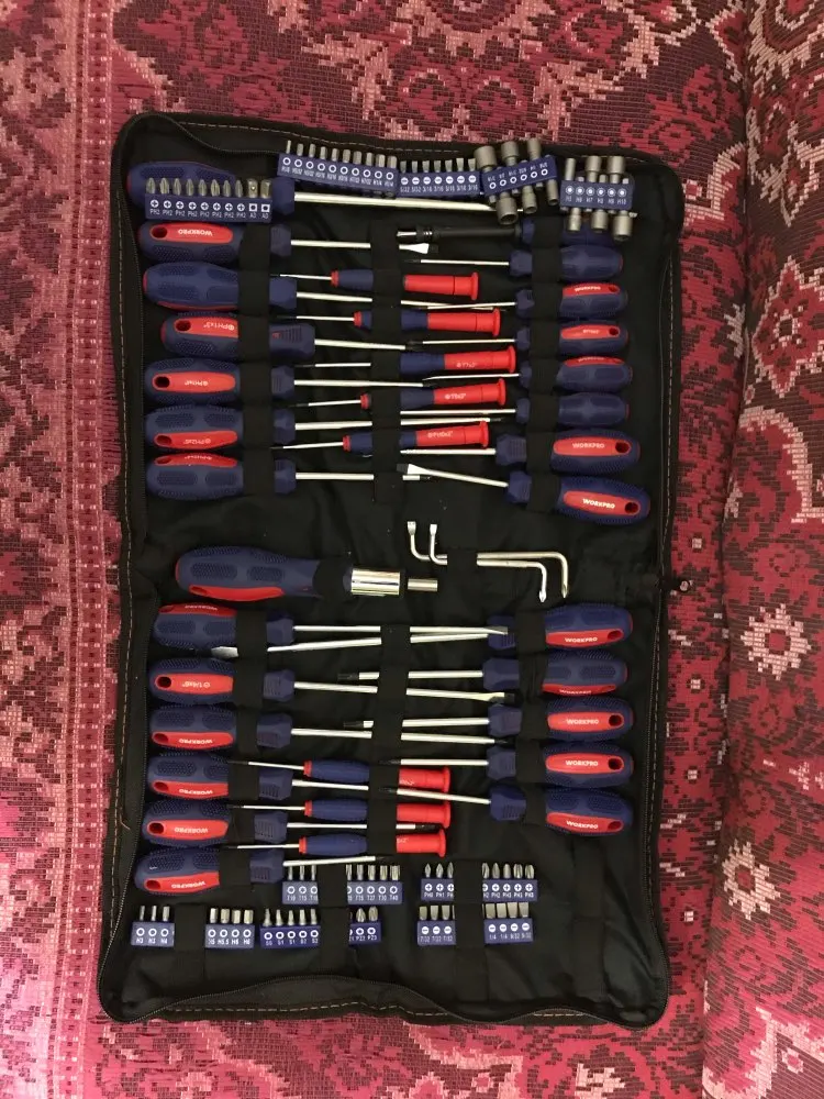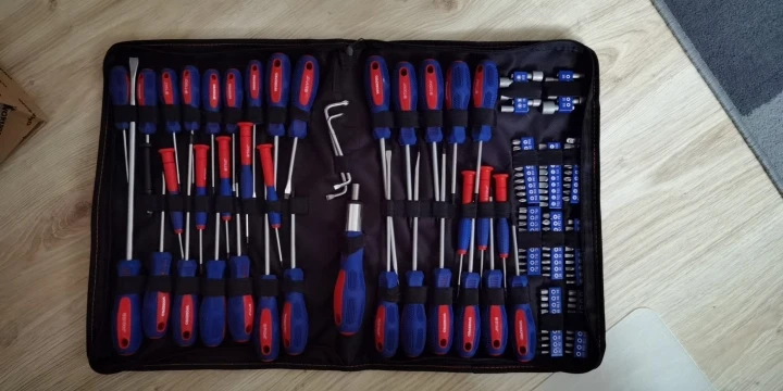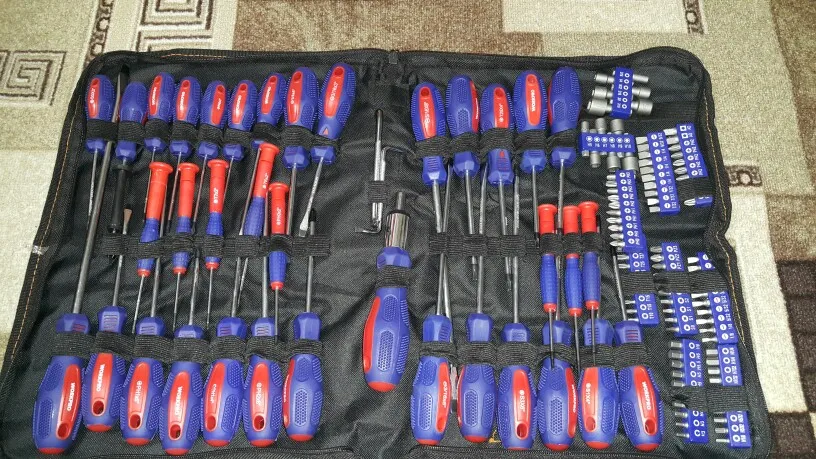 За эти деньги отличный набор. Куча отверток, головки, все что нужно для дома. Ручки удобные. Ну и плюс отличная матерчатая сумка для переноски