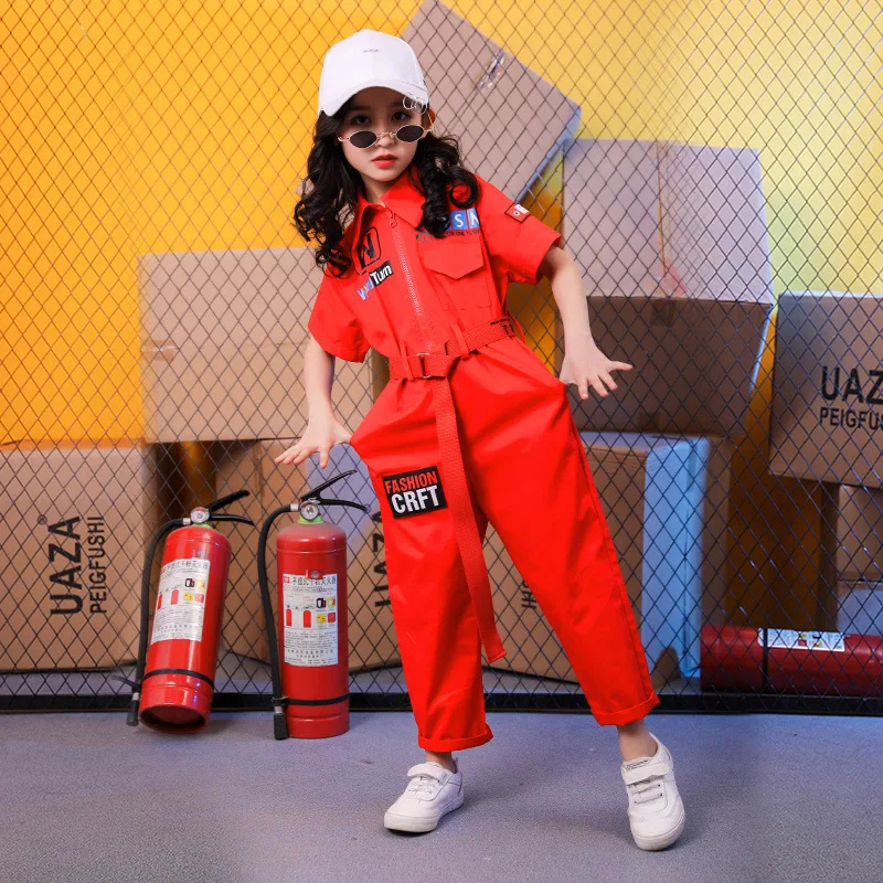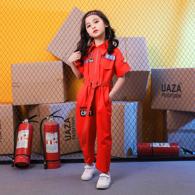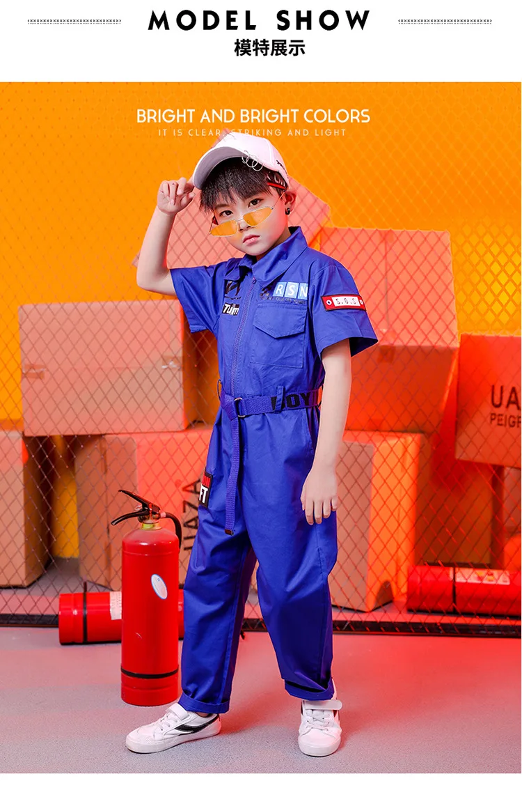 Детские костюмы для танцев; Детская одежда в стиле хип-хоп; Свободные Комбинезоны красного и синего цвета для мальчиков и девочек; Спортивный костюм для сцены; Одежда для уличных танцев в стиле джаз