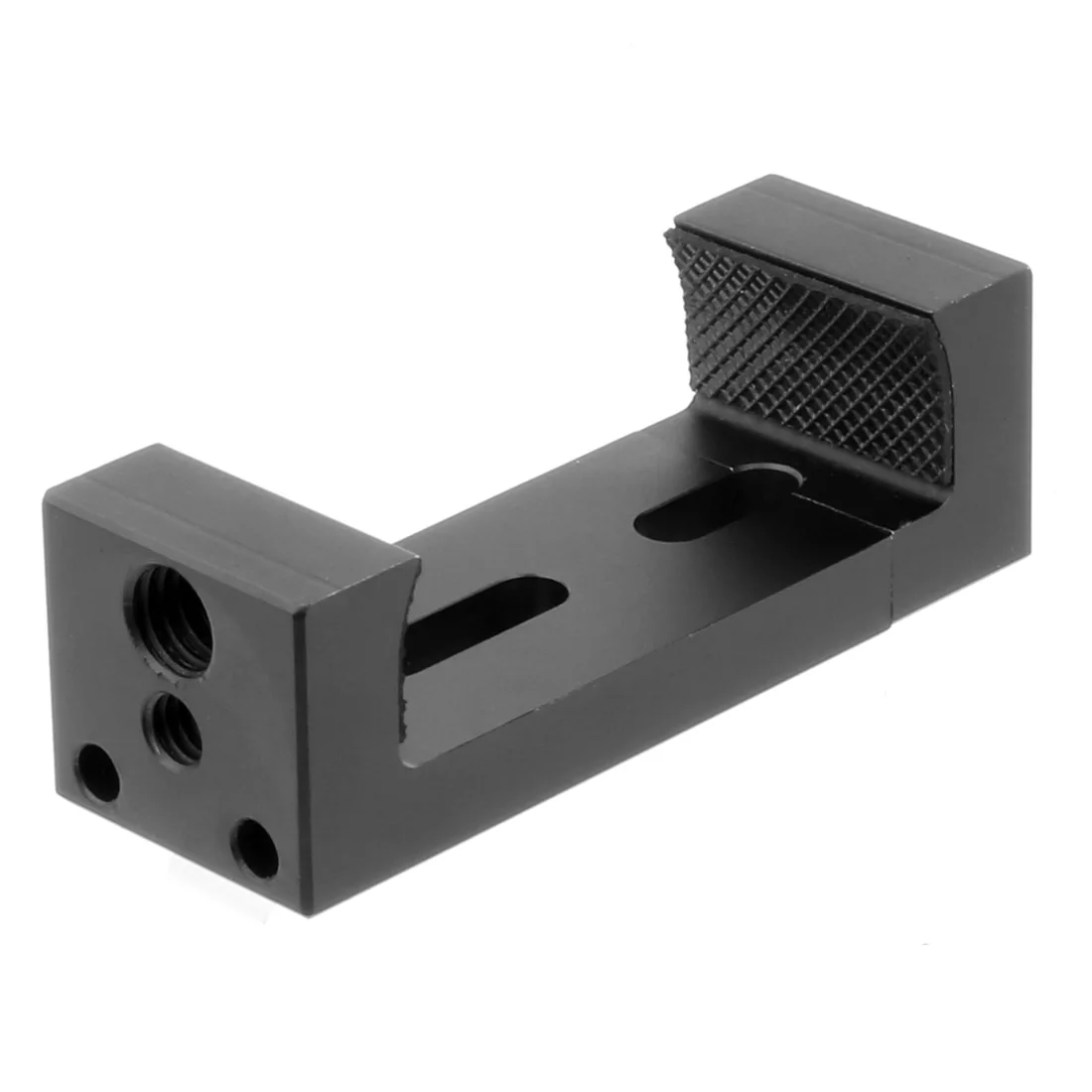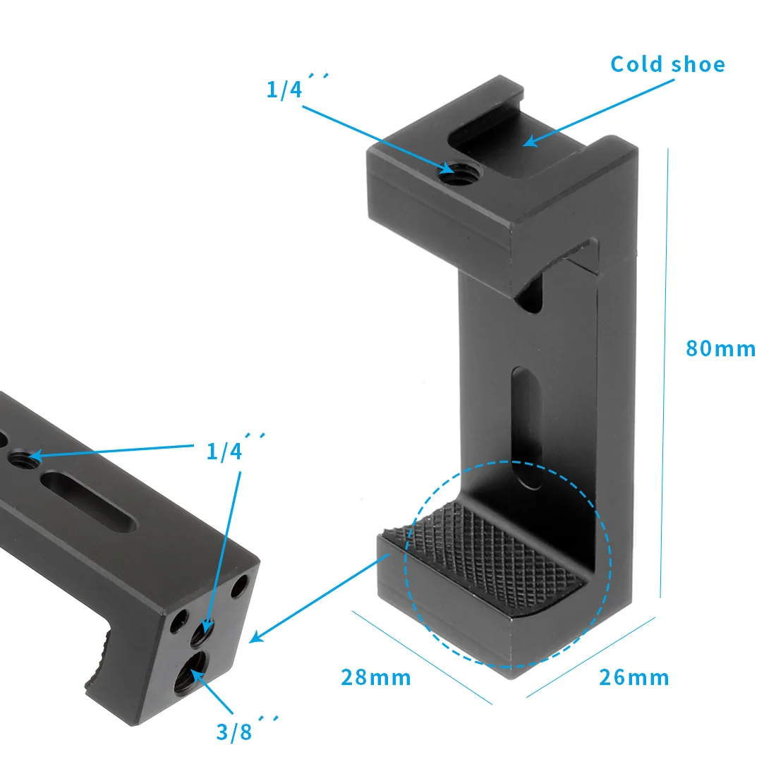 Бренд: BGNingМатериал: алюминиевый сплавЦвет: черныйТехнология поверхности из алюминиевого сплава: анодированиеРазмер продукта: 80 мм * 28 мм * 26 ммВес изделия/г: 70 гКоличество: держатель мобильного телефона * 1Особенности:1. CNC обработка авиационного алюминиевого сплава, прочный и прочный;2. Высококачественный анодированный Пескоструйный и окислительный, удобный на ощупь, и цвет прочный и не выцветает;3. Максимальная ширина зажима 87 мм;4. Есть 1/4 "винтовые отверстия и 3/8" винтовые отверстия в нижней части;5. Сверху есть байонет холодного башмака.